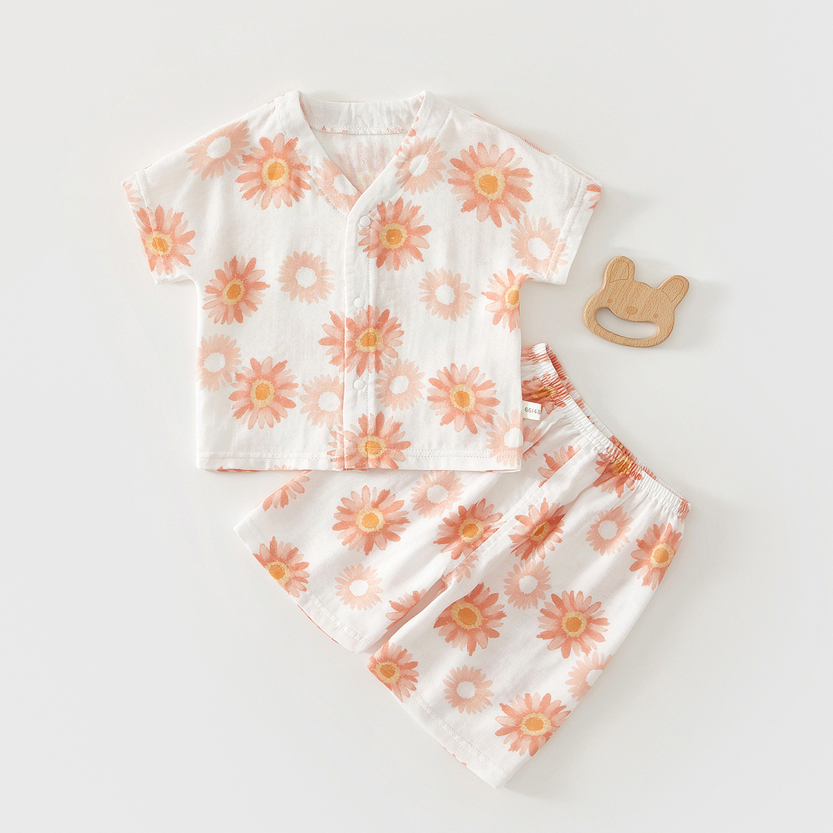 아기 더블 레이어 원사 반팔 반바지 대나무 섬유 여름 잠옷 홈 옷 분할 옷 아기 뼈없는 세트스토어 가기
