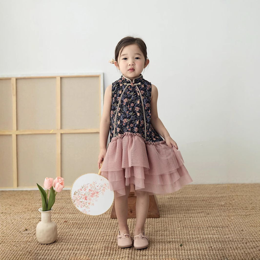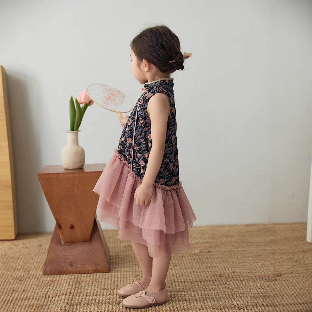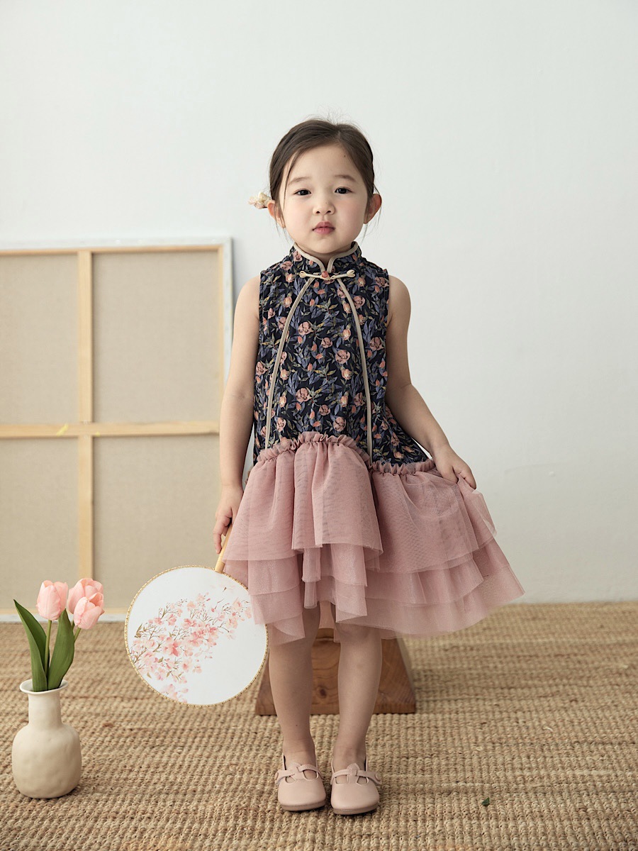 • 핑크 꽃무늬 치파오 스커트 재고 있음