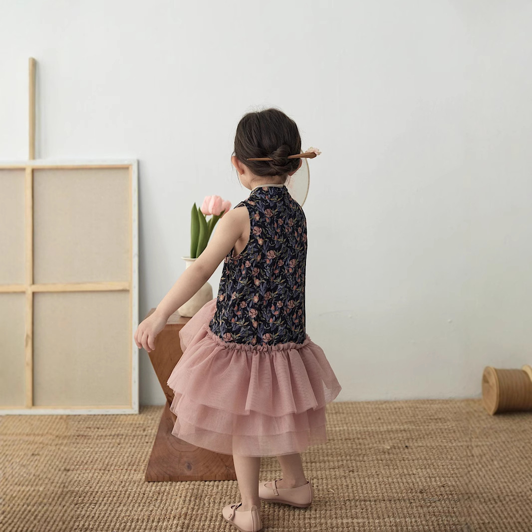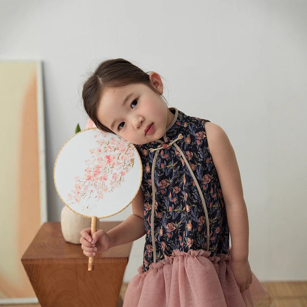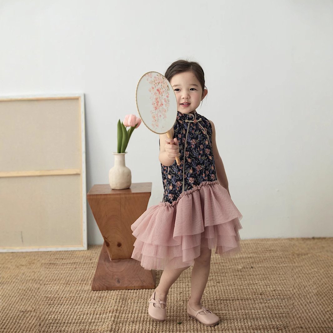 • 핑크 꽃무늬 치파오 스커트 재고 있음