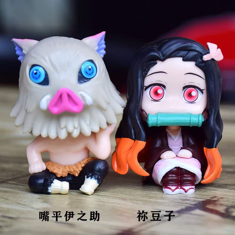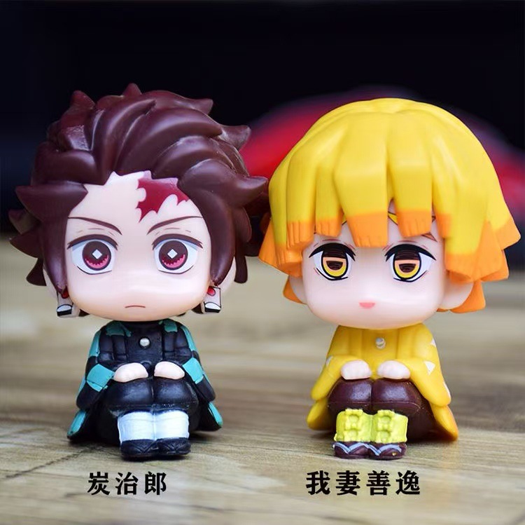 블라인드 박스 손으로 만든 고스트 킬링 블레이드 팀 Q 에디션 Charcoal Zhilang 나비 내 아내 Shan Yi Doll Gashapon 기계 장식품 장난감스토어 가기