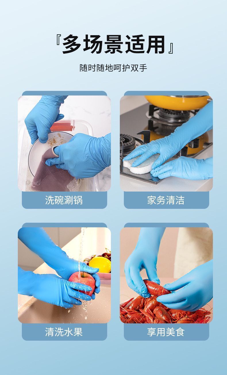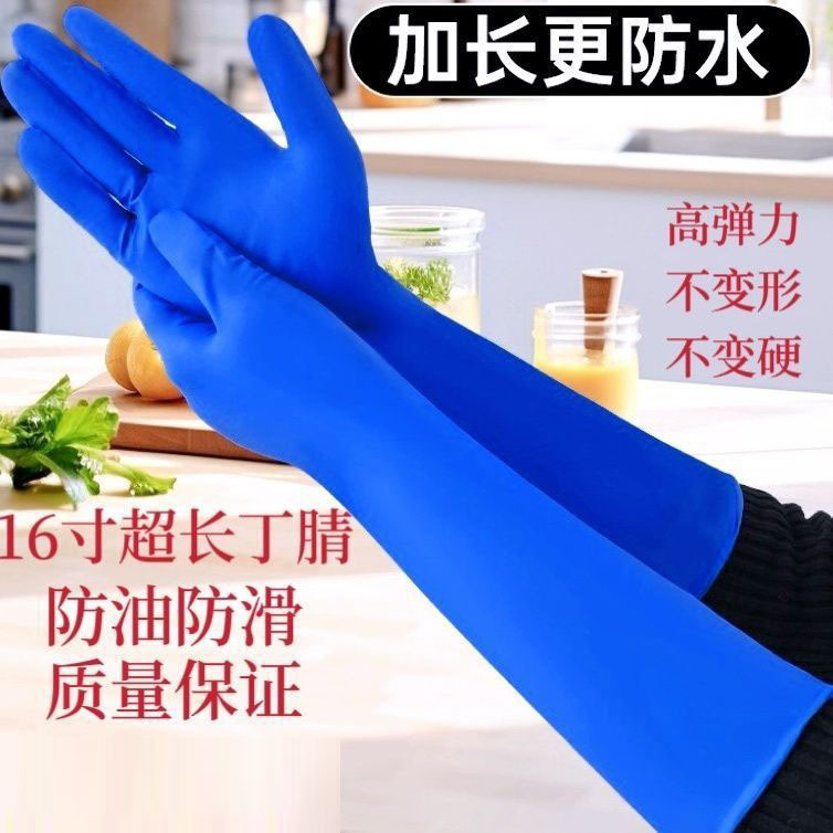 16 인치 확장 방수 니트릴 장갑 식품 등급 가정용 식기 세척 일회용 내마모성 내구성 주방스토어 가기