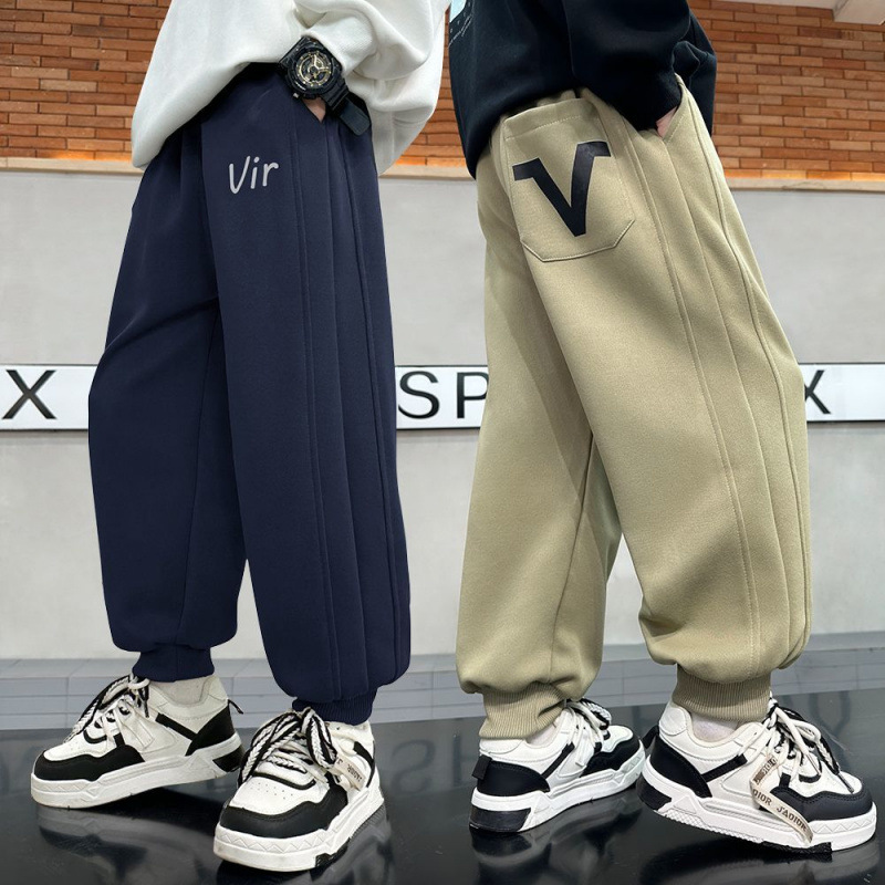 소년 가을/겨울 바지 스웨트 바지 2025 어린이 새 기모 두꺼운 겨울 스포츠 바지 바지