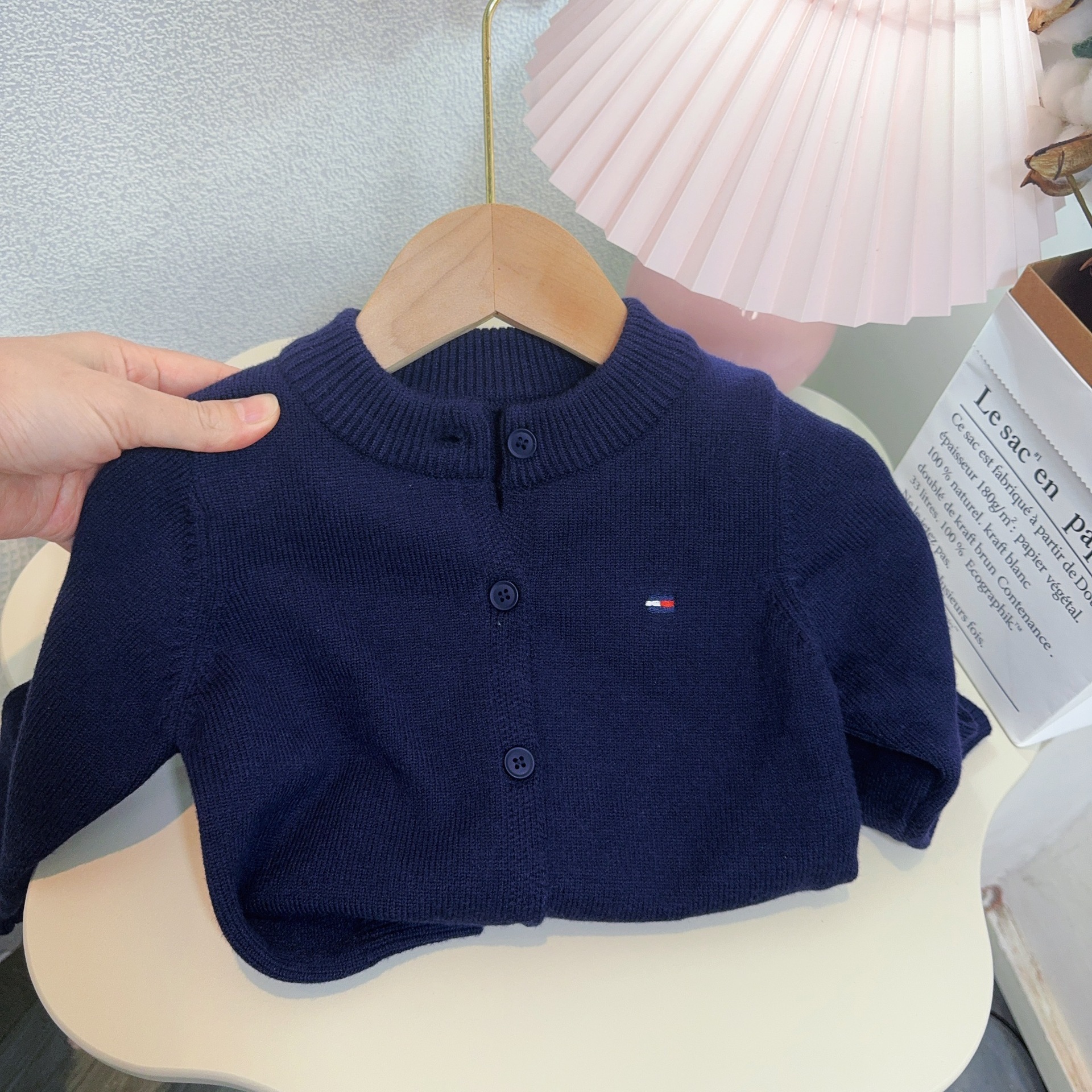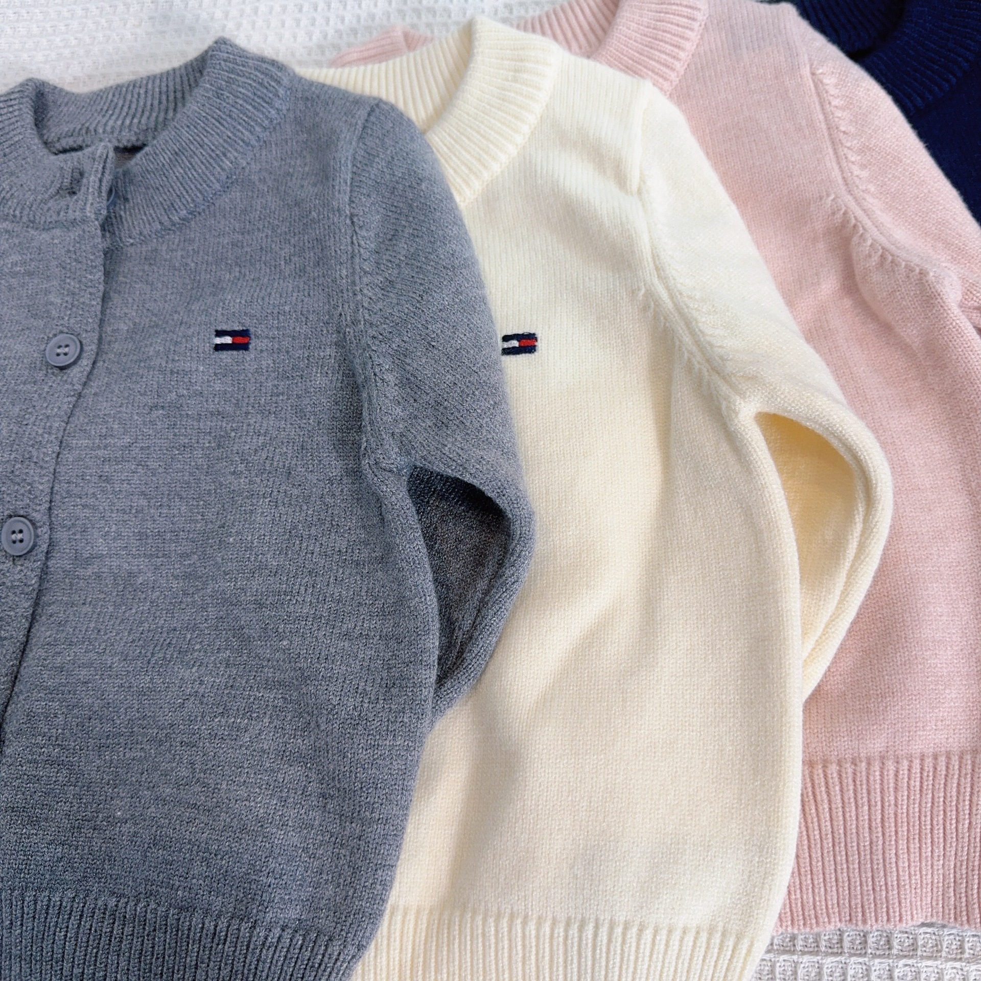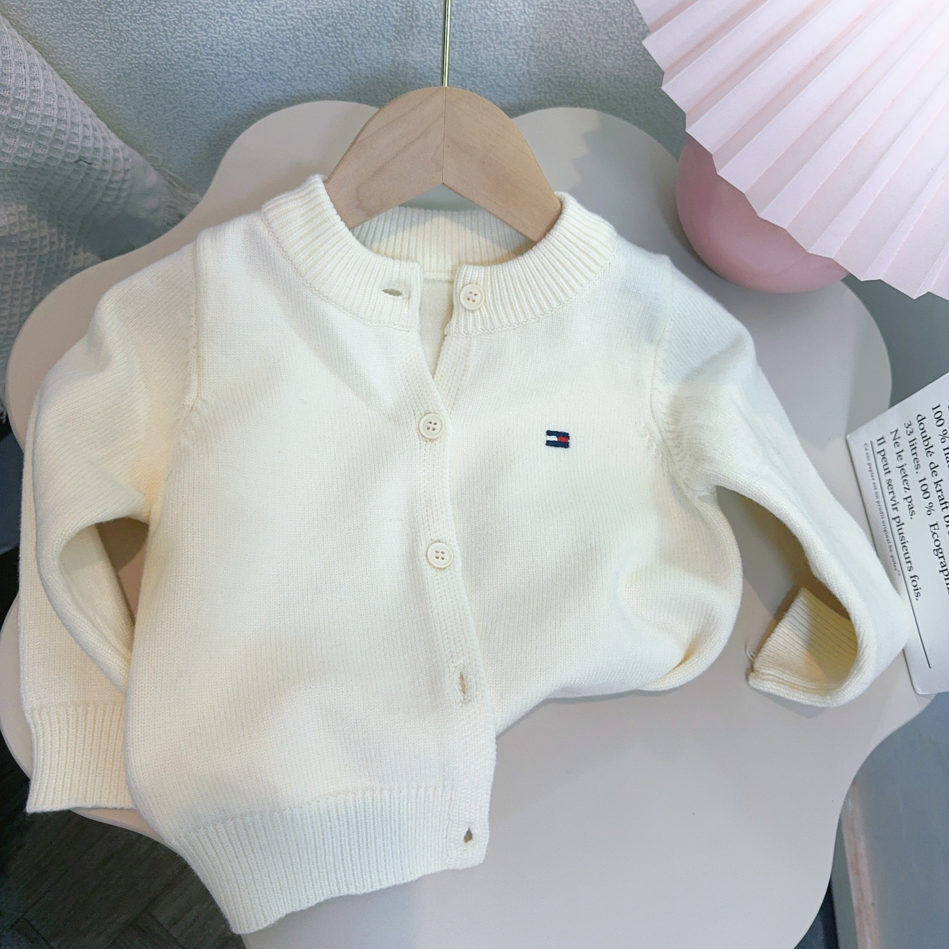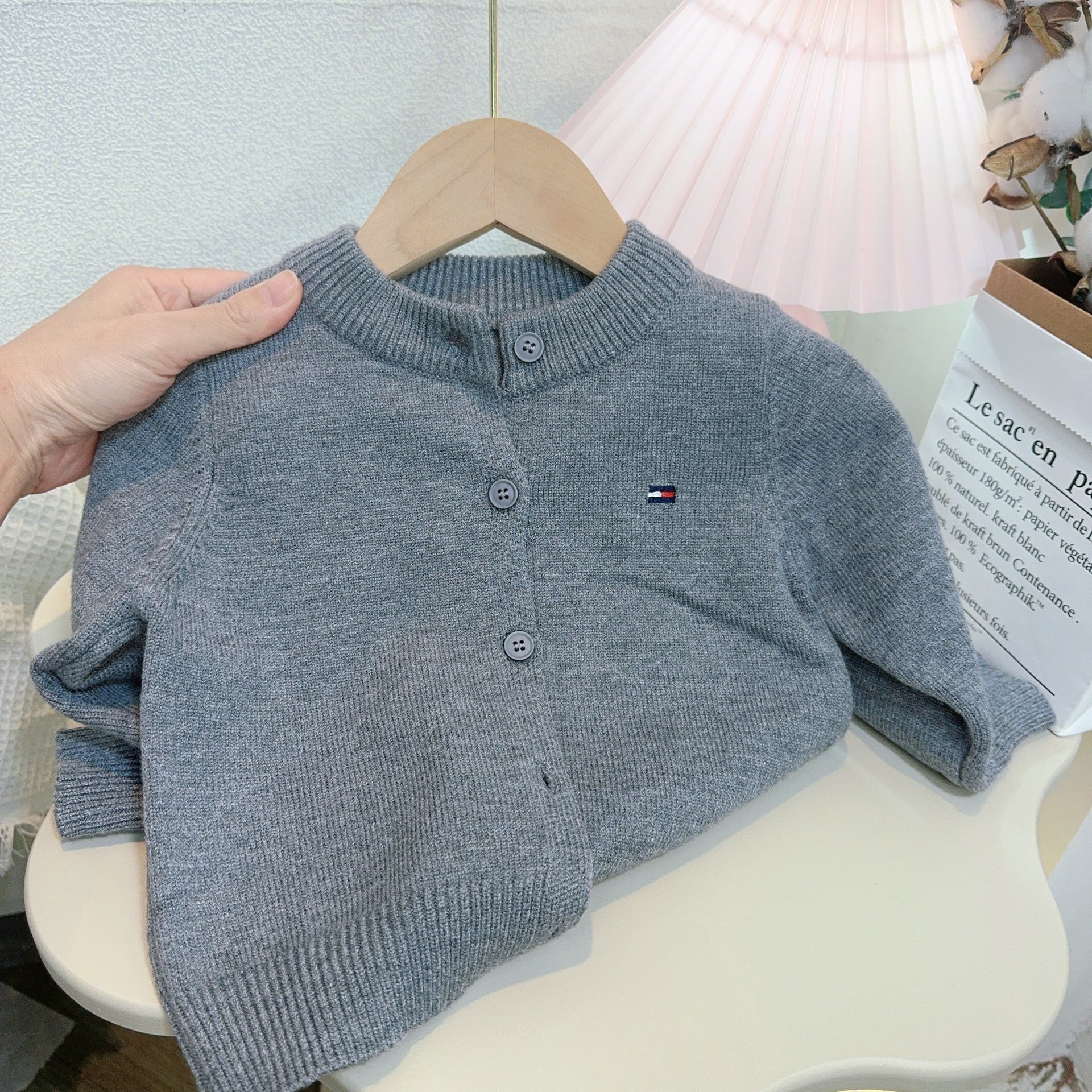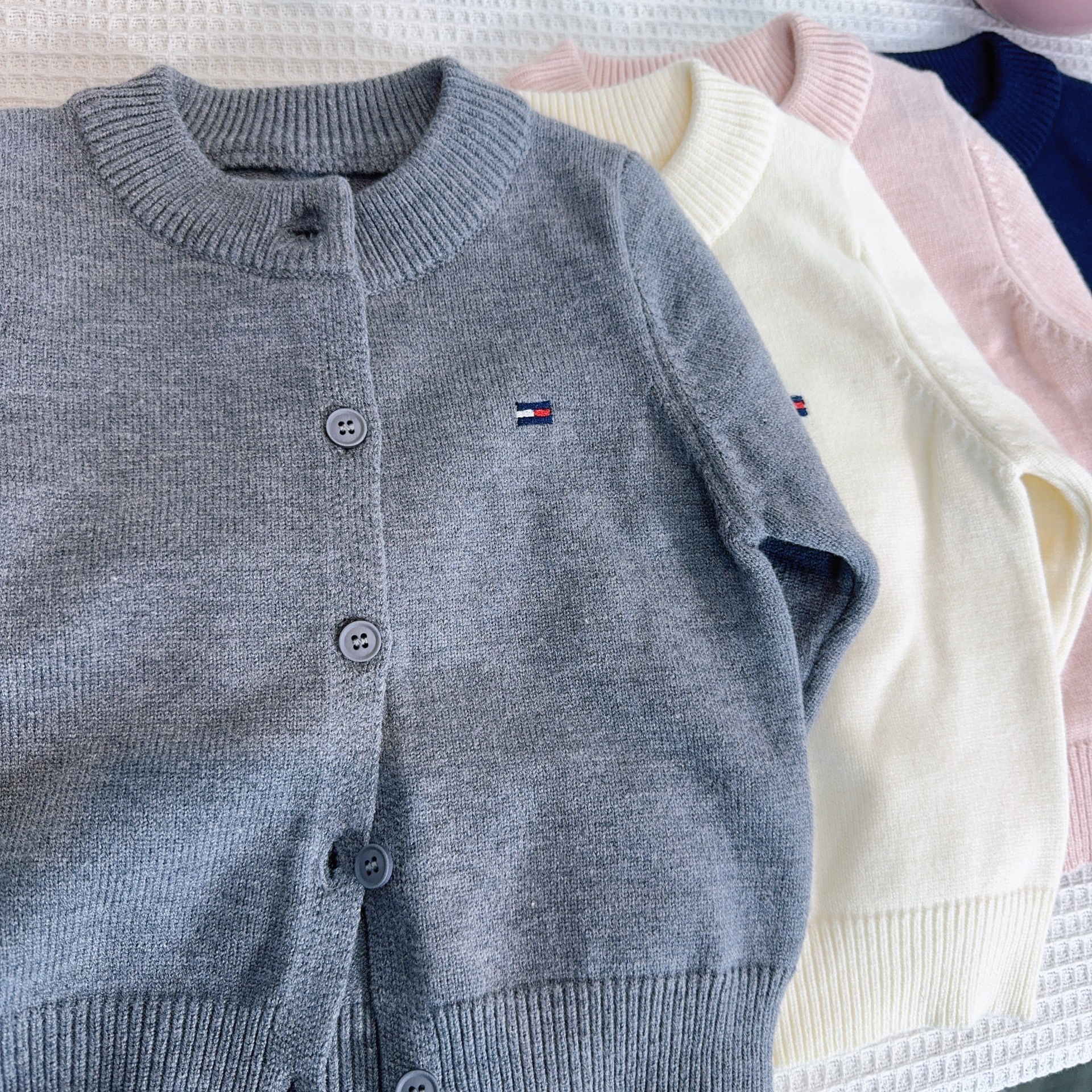 어린이 스웨터 소년과 소녀 솔리드 컬러 니트 카디건 아기의 양모 라운드 넥 코트 봄과 가을 긴 소매 탑