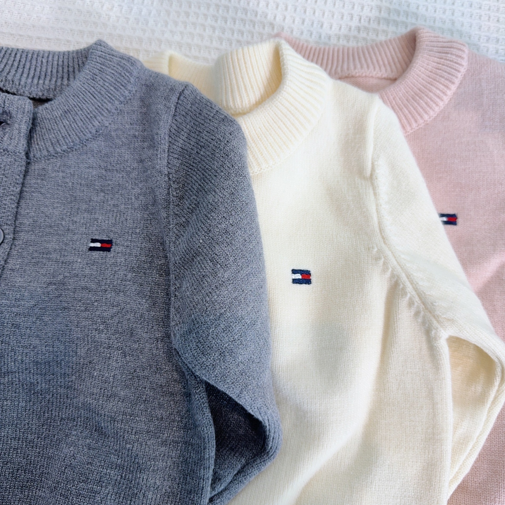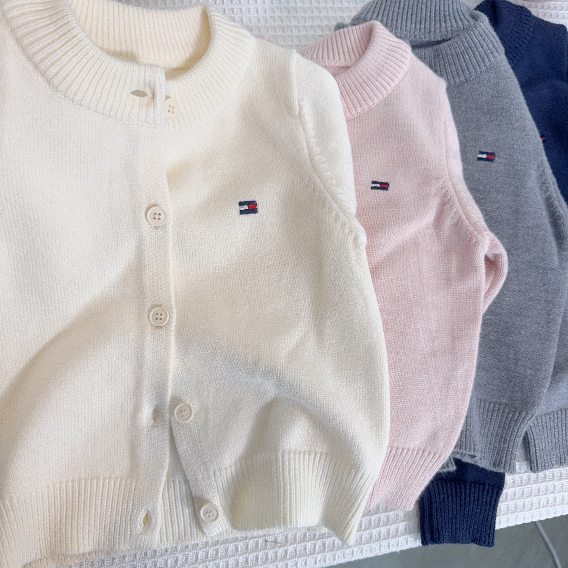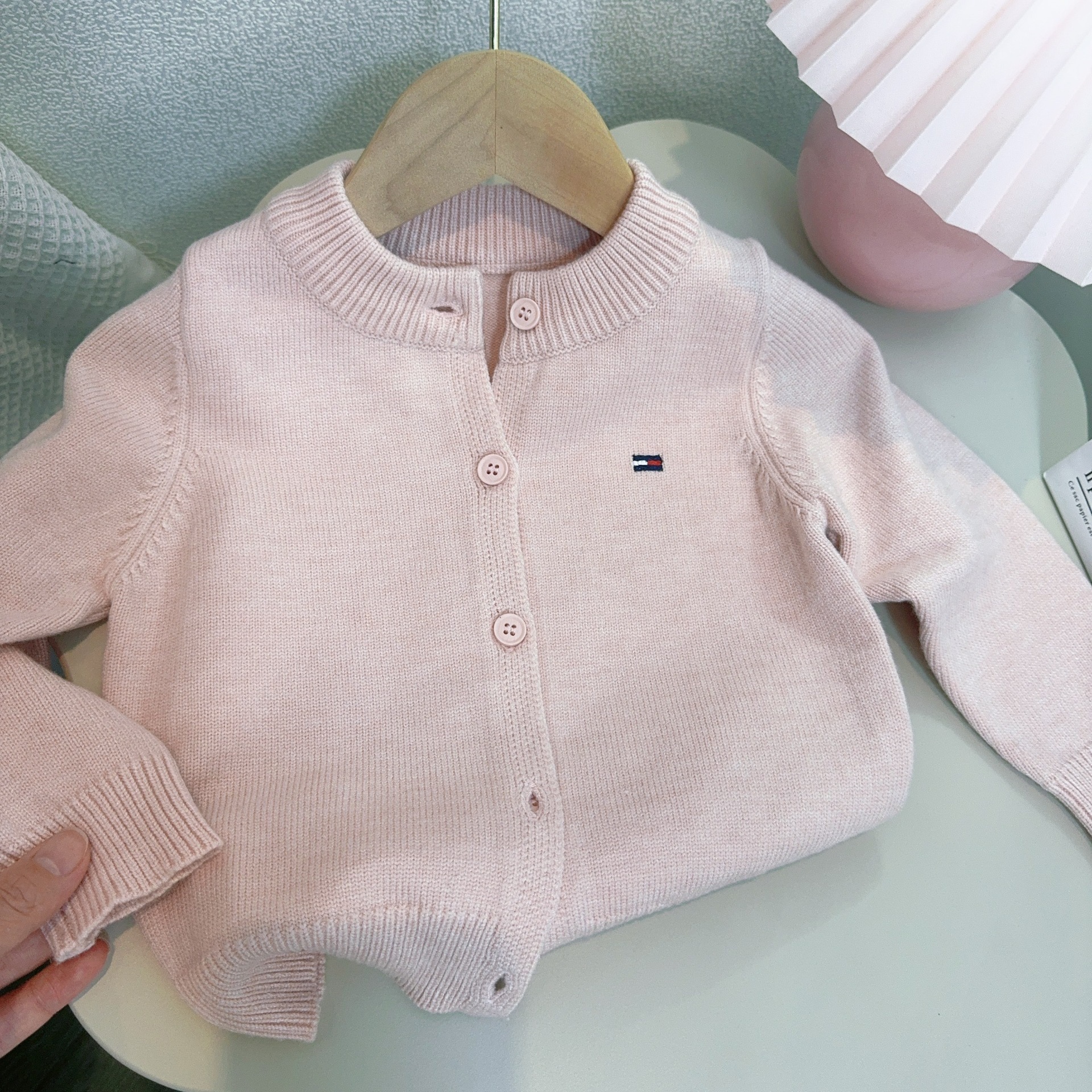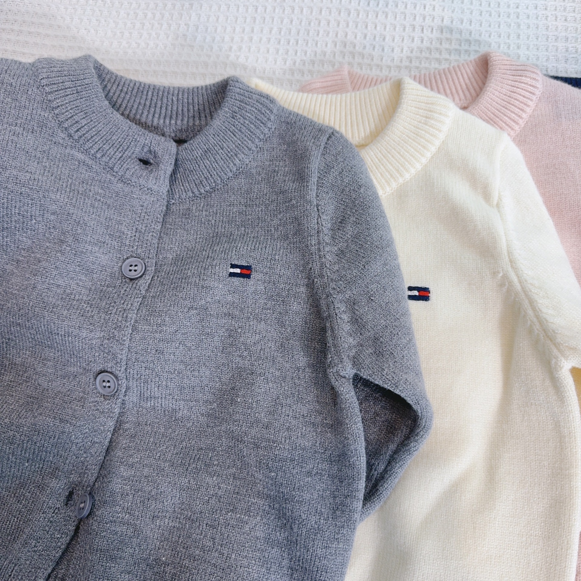 어린이 스웨터 소년과 소녀 솔리드 컬러 니트 카디건 아기의 양모 라운드 넥 코트 봄과 가을 긴 소매 탑