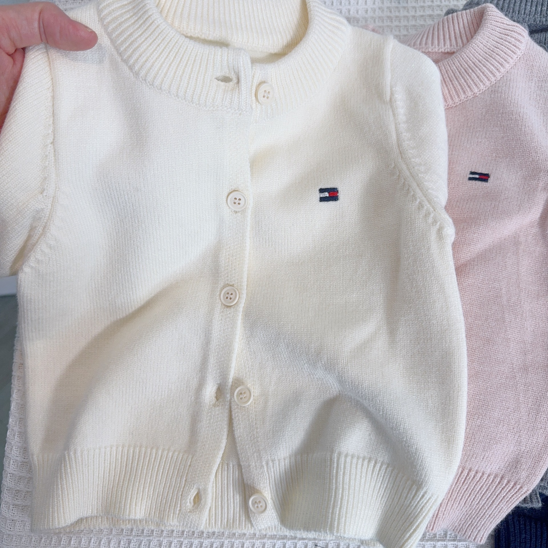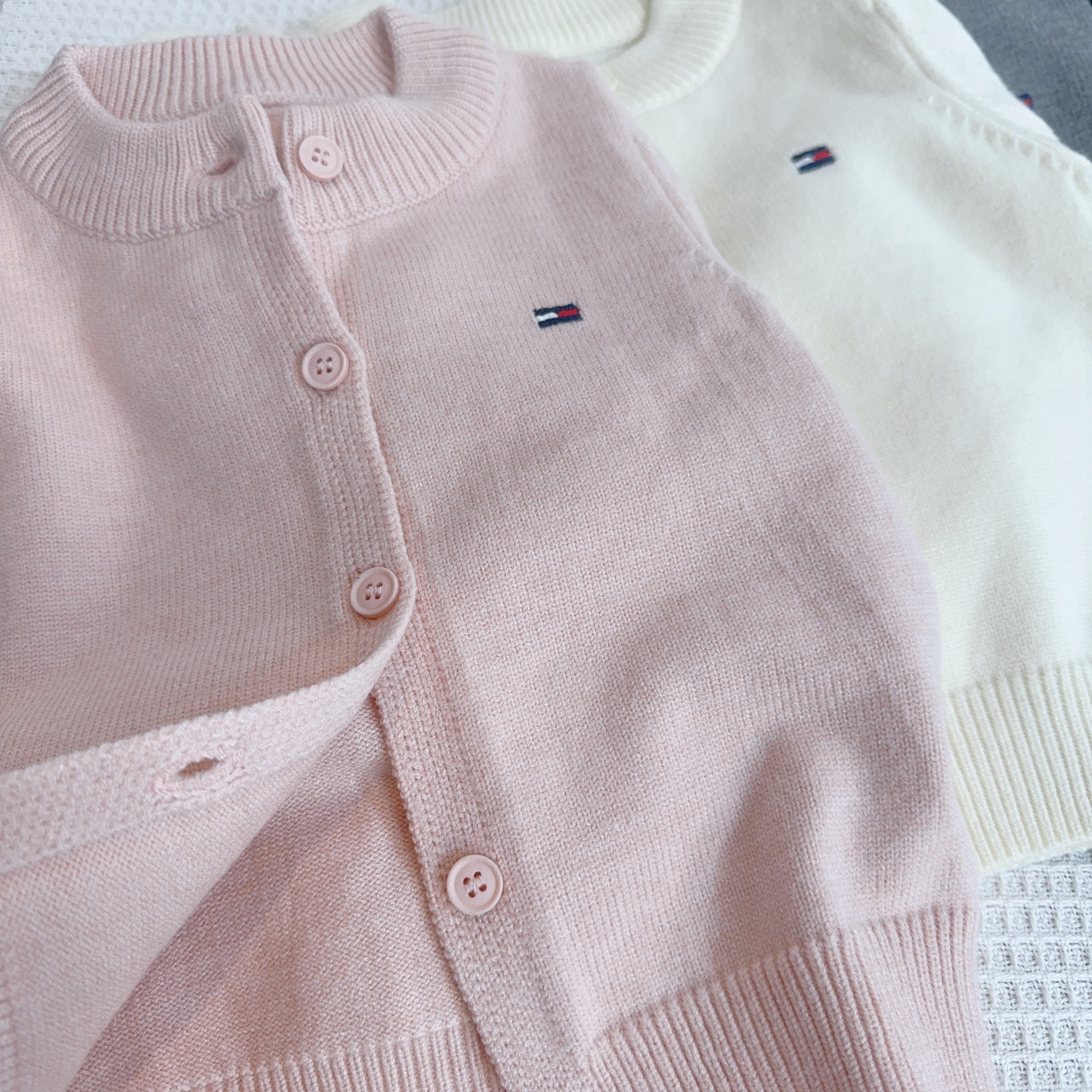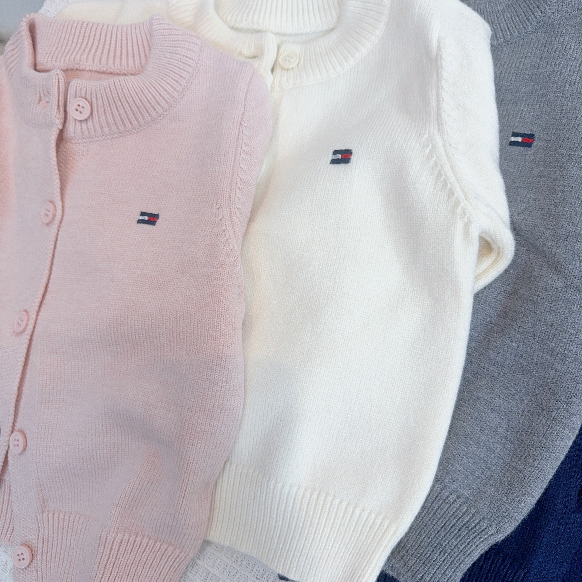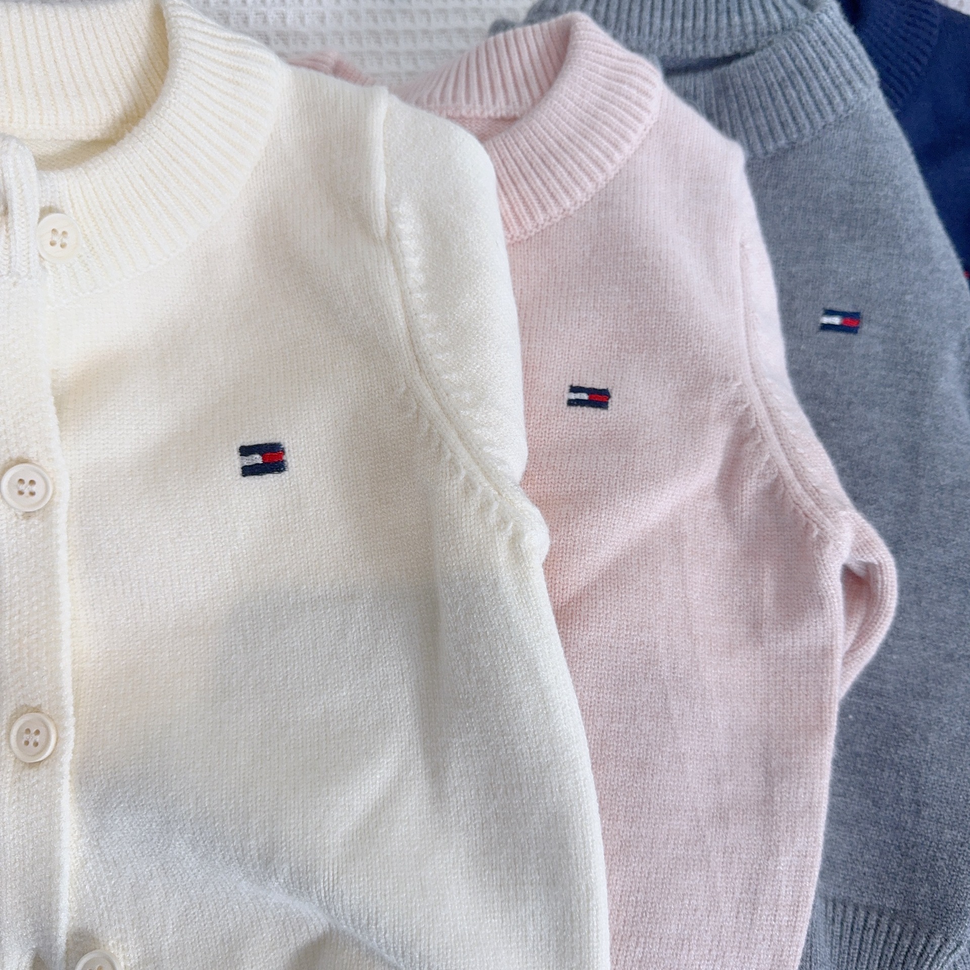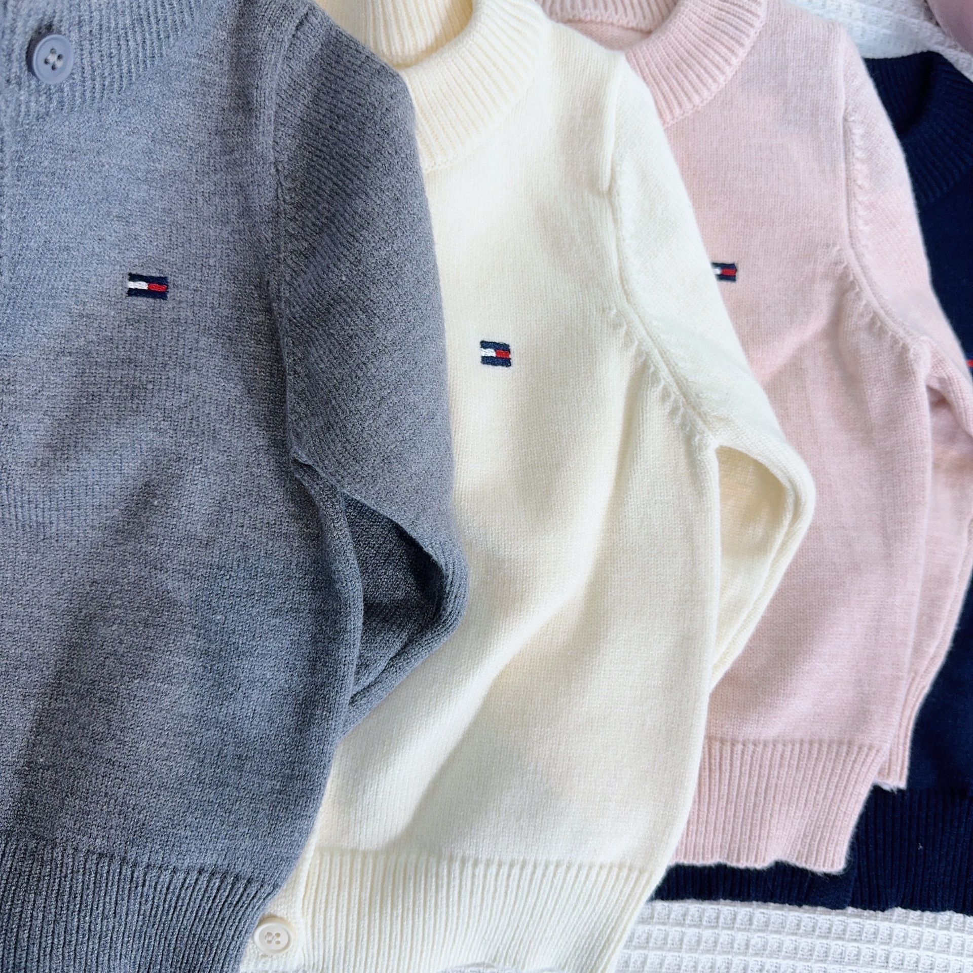 어린이 스웨터 소년과 소녀 솔리드 컬러 니트 카디건 아기의 양모 라운드 넥 코트 봄과 가을 긴 소매 탑