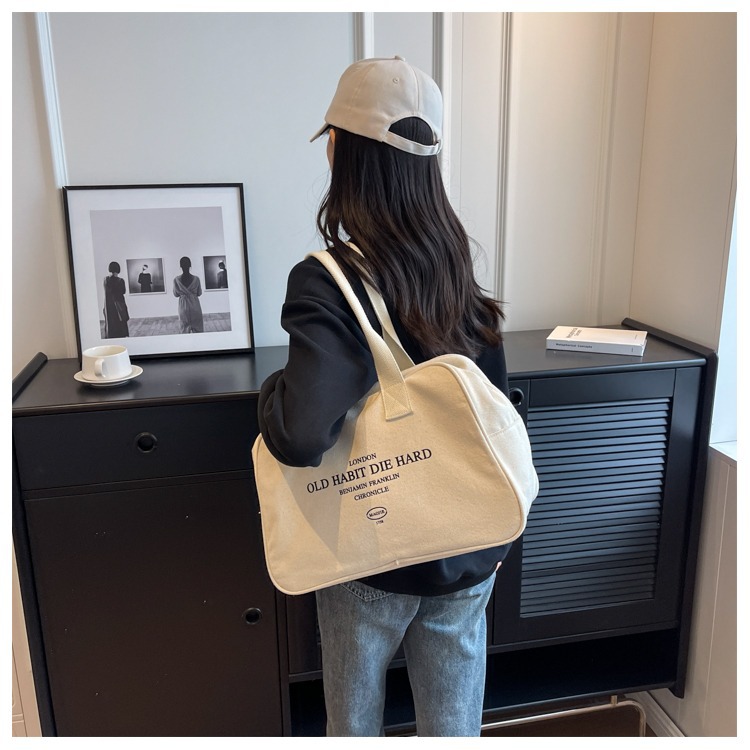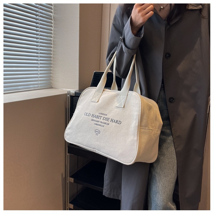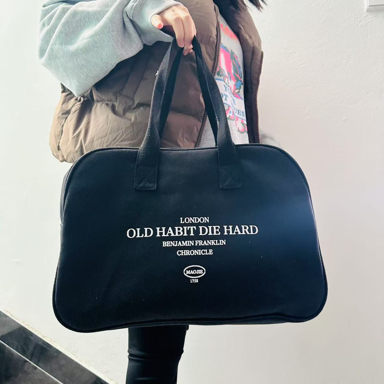 레트로 보스턴백 여행가방 2025 캔버스 패션 휴대용 경량 단거리 출장 한국 토트 숄더백 여성용스토어 가기