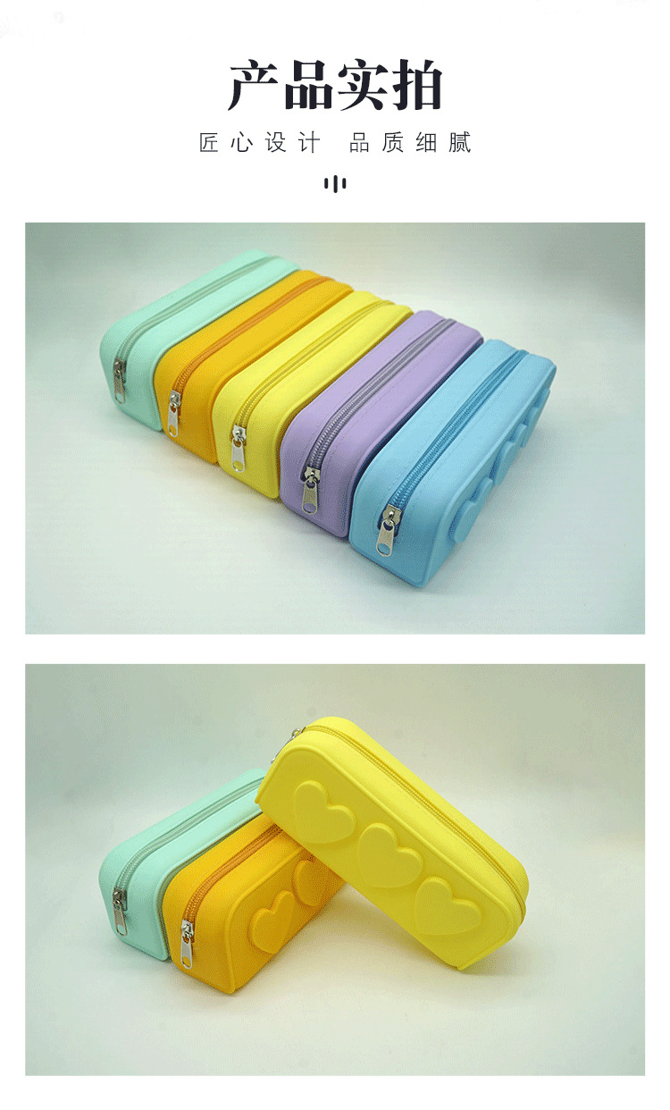 학생 문구 가방 실리콘 연필 케이스 간단한 솔리드 컬러 대용량 문구 상자 실리콘 메이크업 보관 상자 사랑 연필 케이스스토어 가기