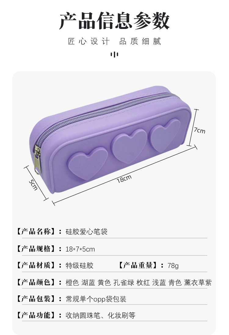 학생 문구 가방 실리콘 연필 케이스 간단한 솔리드 컬러 대용량 문구 상자 실리콘 메이크업 보관 상자 사랑 연필 케이스