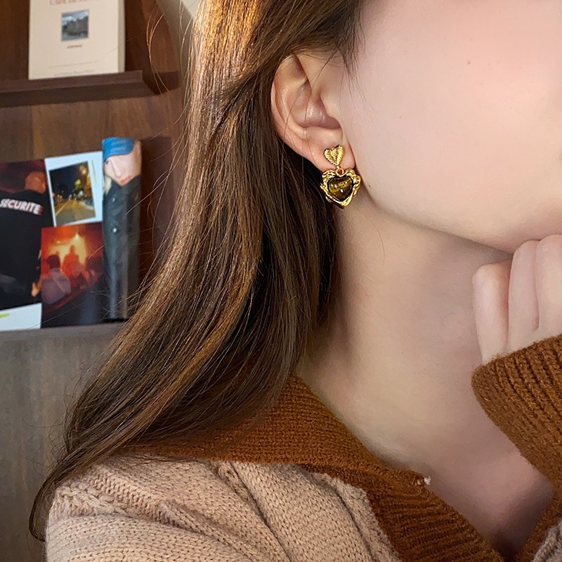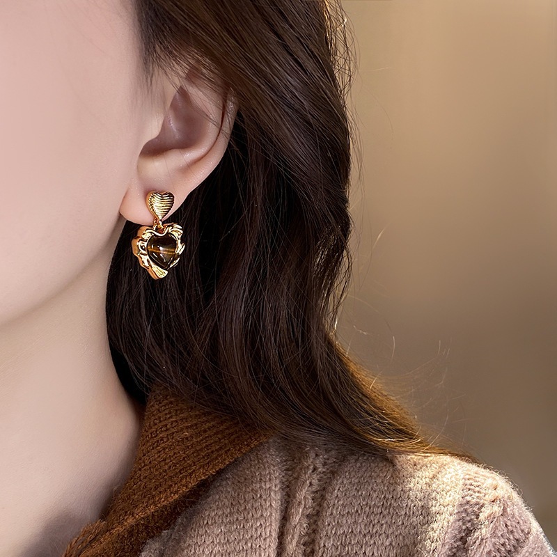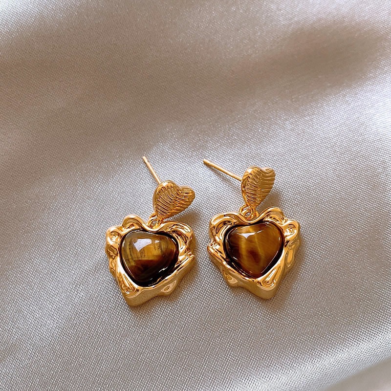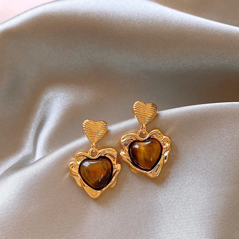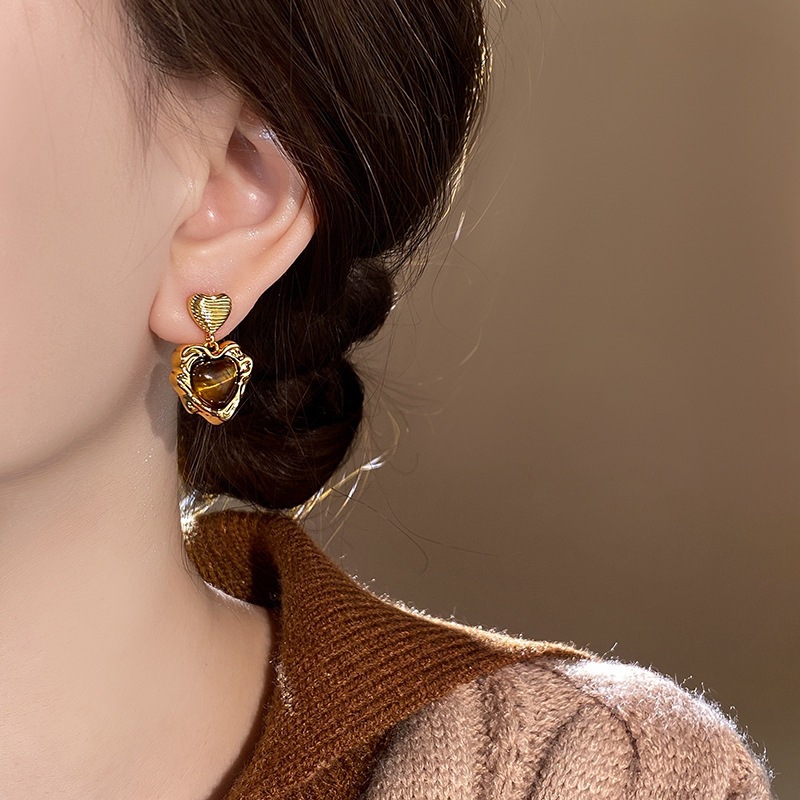 독특한 2024 새로운 마일라드 사랑 타이거 아이 스톤 귀걸이 여성 센스 라이트 럭셔리 귀걸이 우아한 귀걸이 가을과 겨울