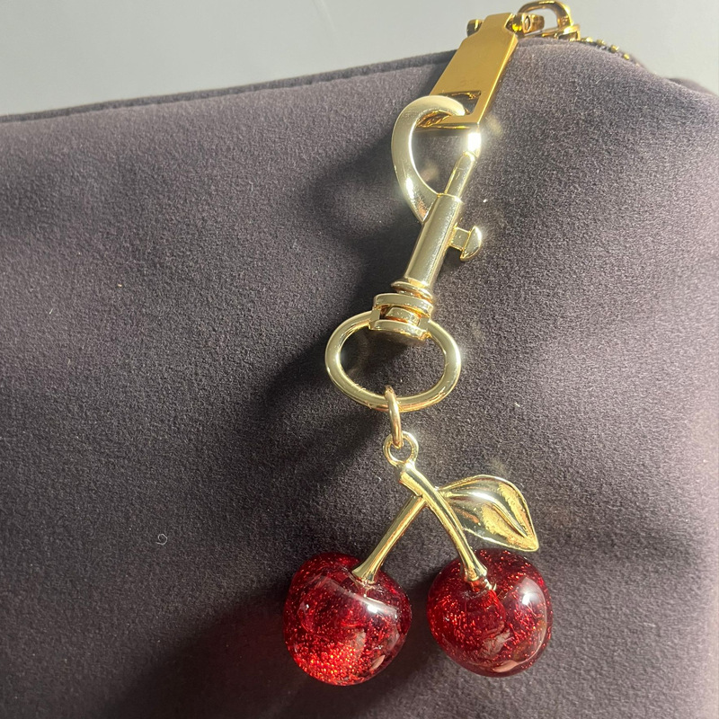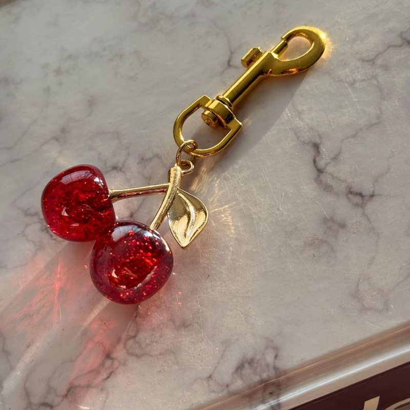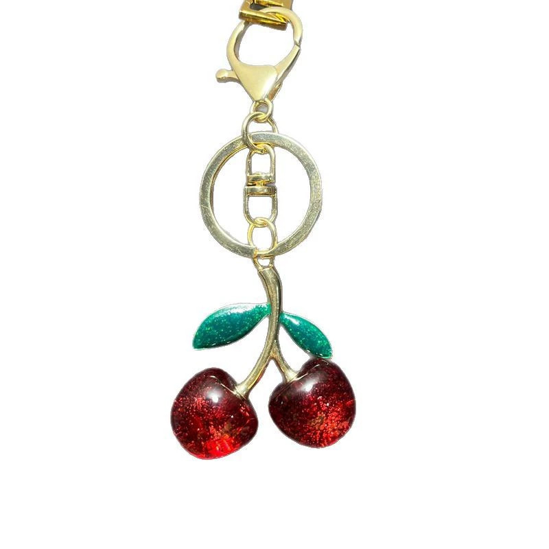 공장 도매 새로운 빛나는 시뮬레이션 체리 펜던트 키 체인 귀여운 학생 보석 절묘한 3 차원 과일 체인