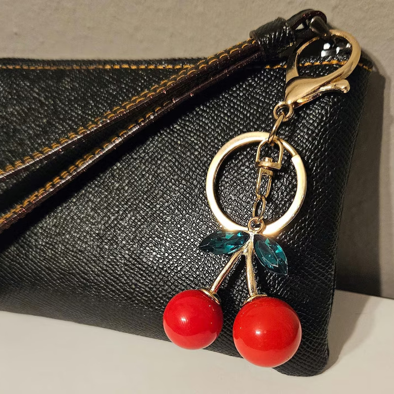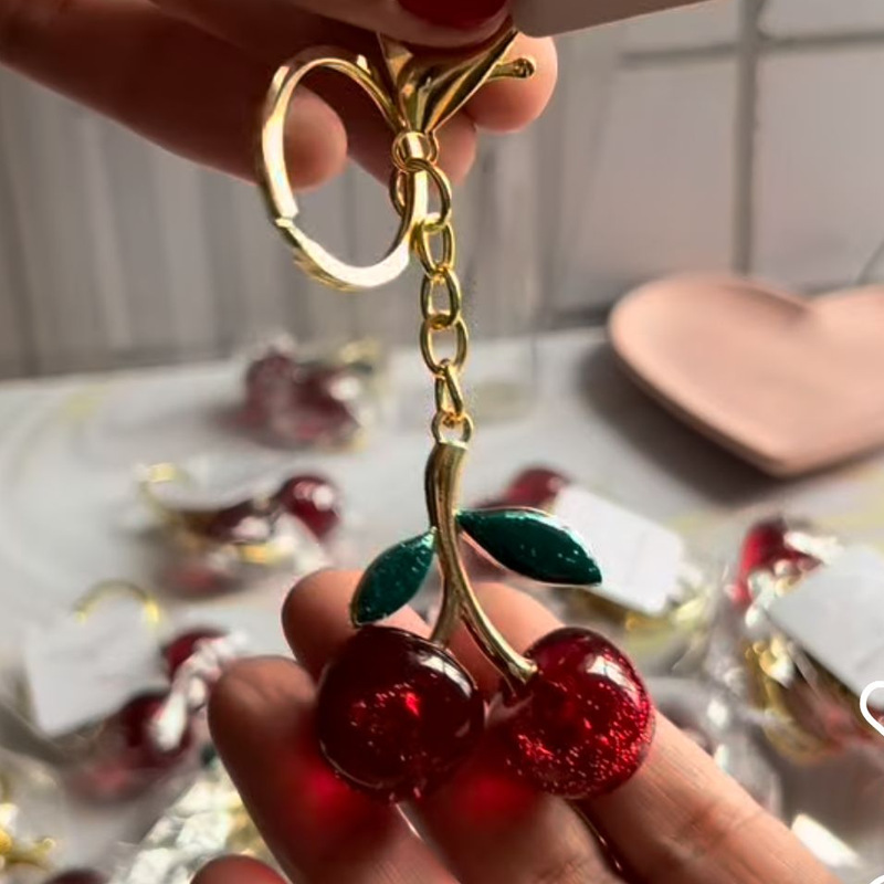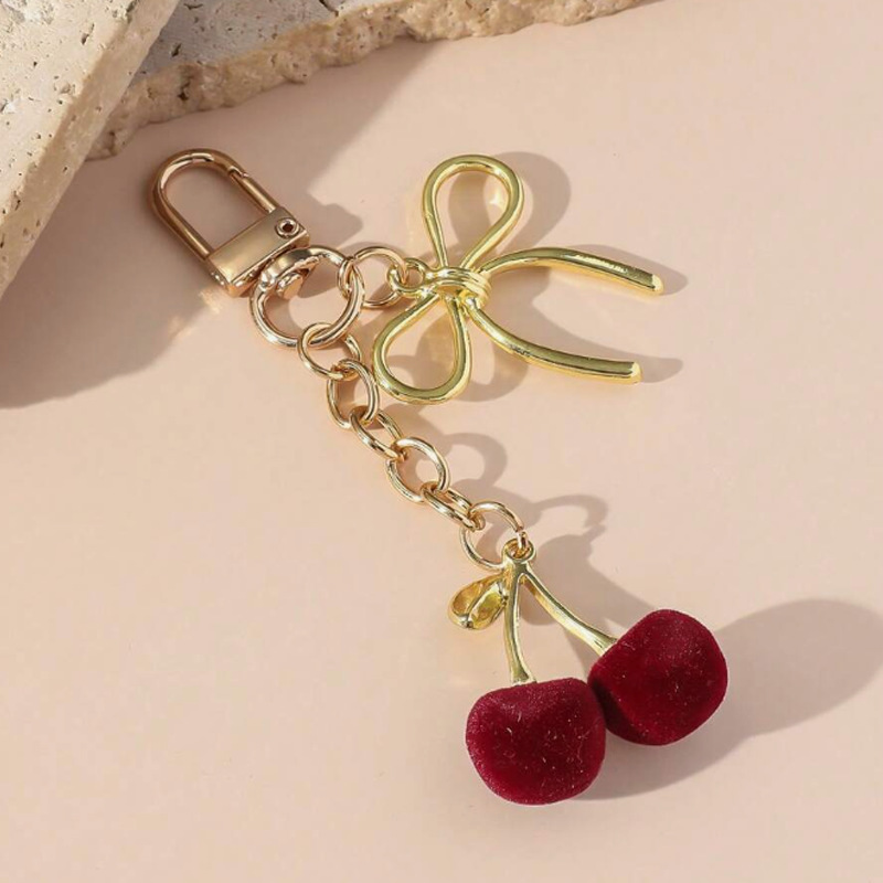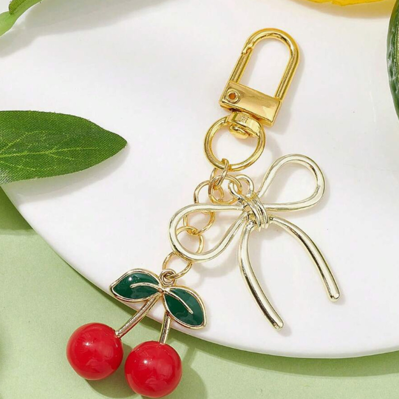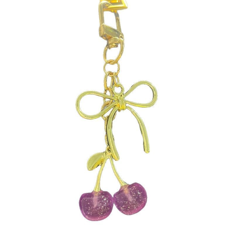 공장 도매 새로운 빛나는 시뮬레이션 체리 펜던트 키 체인 귀여운 학생 보석 절묘한 3 차원 과일 체인스토어 가기