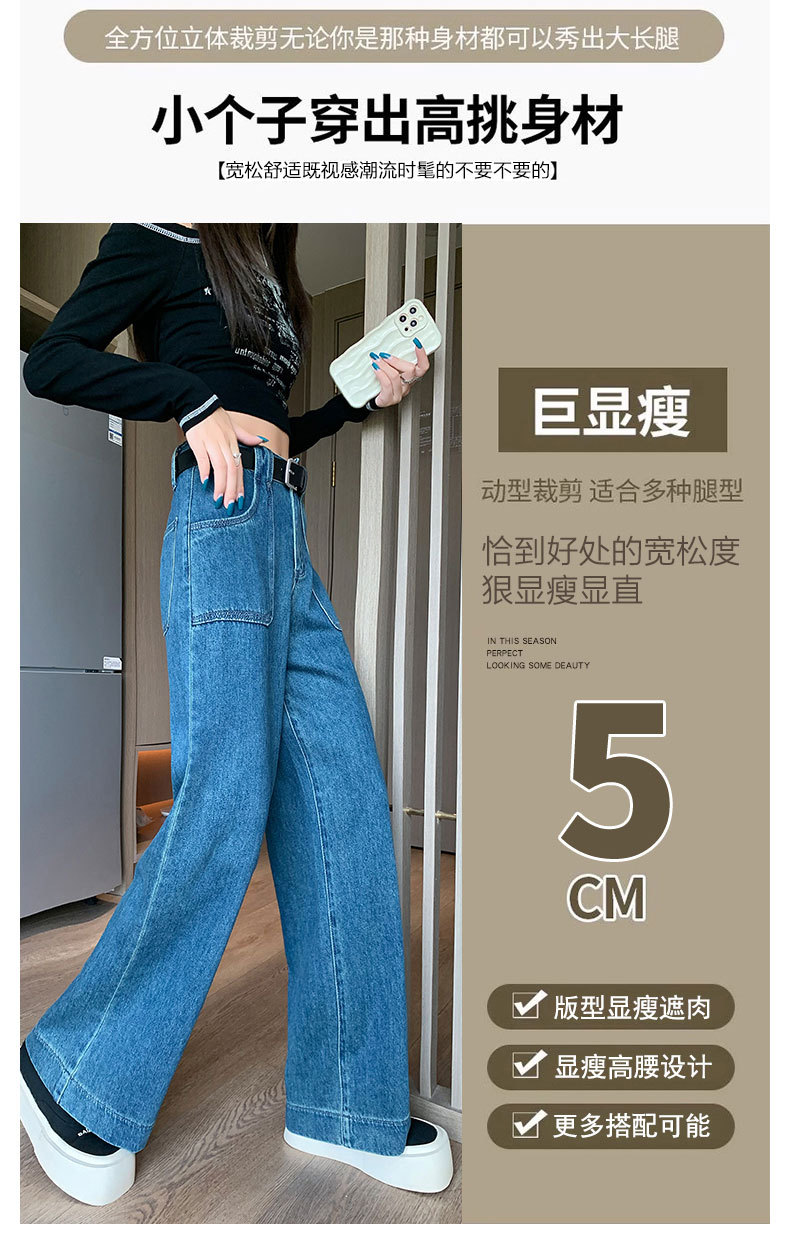 7166 프랑스 스트레이트 대형 포켓 높은 허리 청바지 여성의 2025 년 봄과 여름 소녀와 학생을위한 새로운 복고풍 청바지스토어 가기