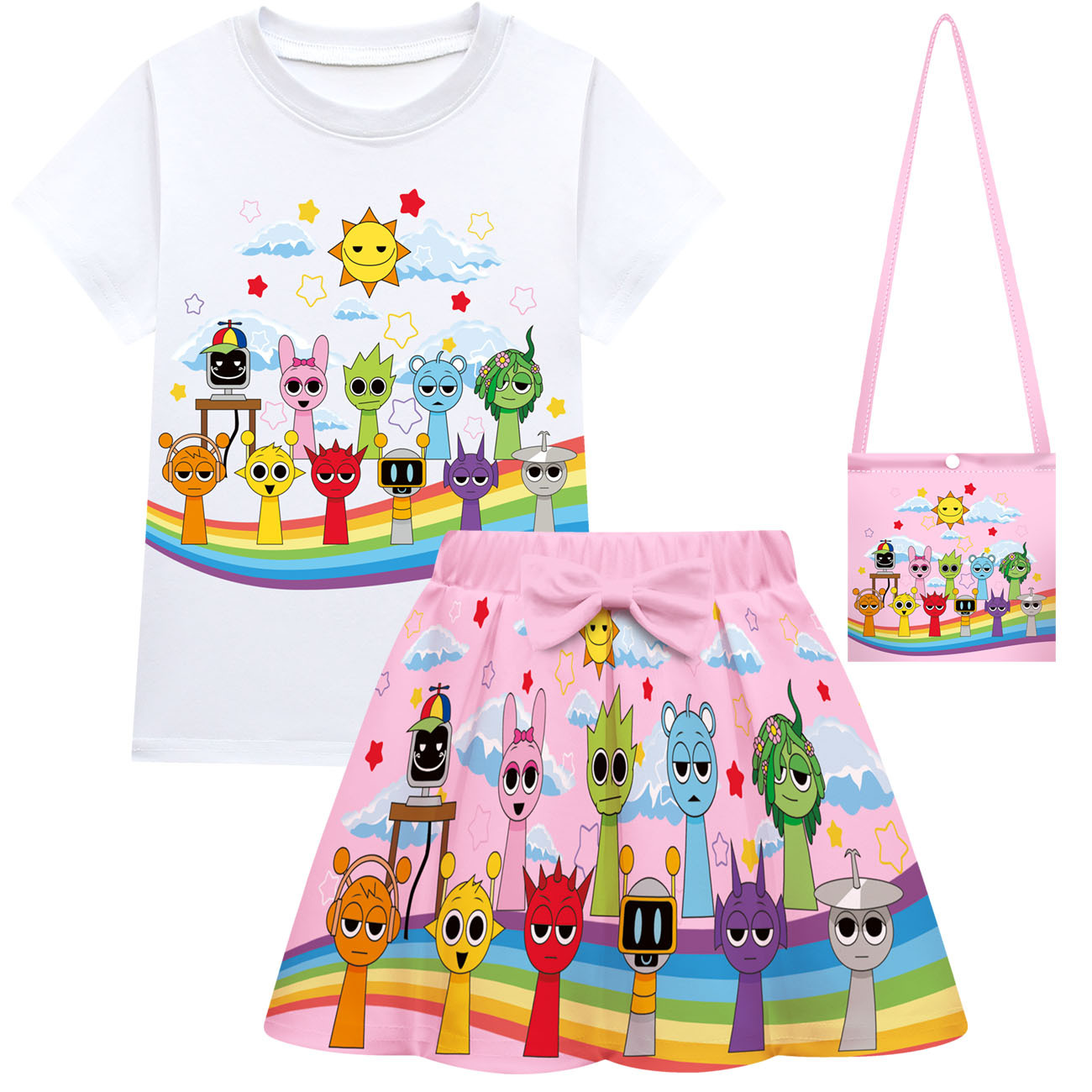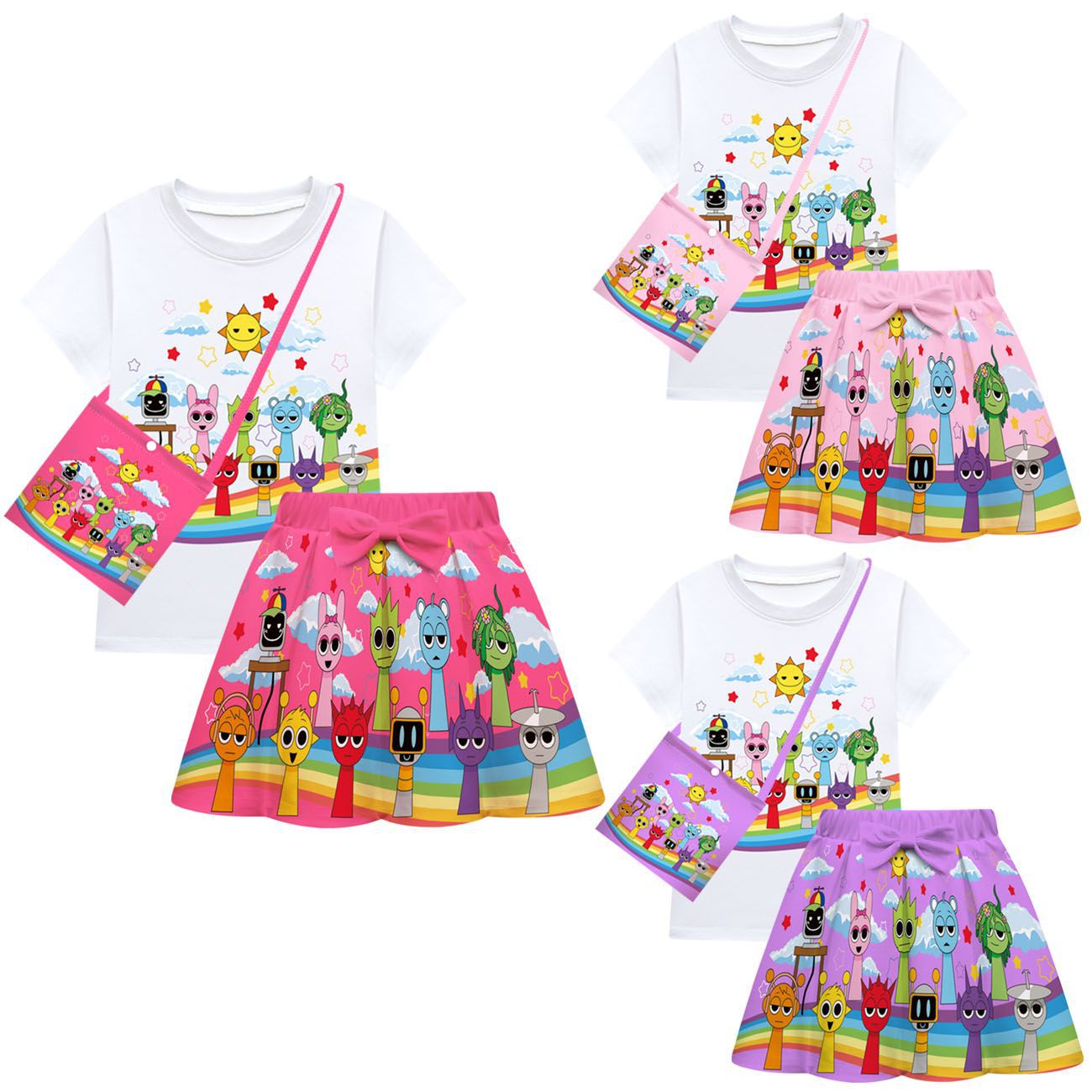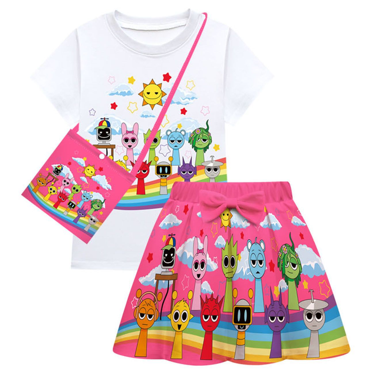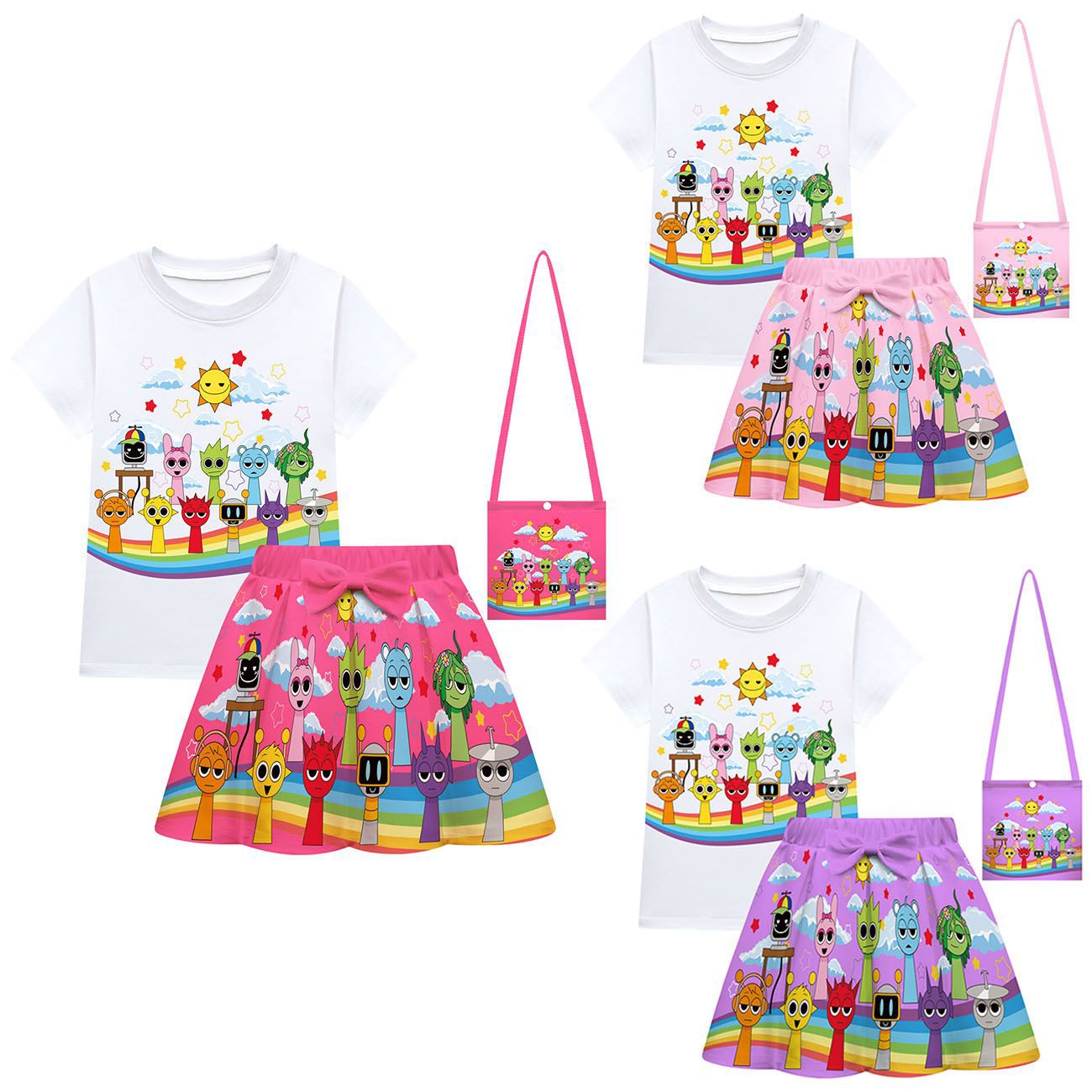 새로운 리듬 박스 Sprunki Plush 소녀 짧은 소매 주름 치마 가방 3 피스 3186 82238스토어 가기