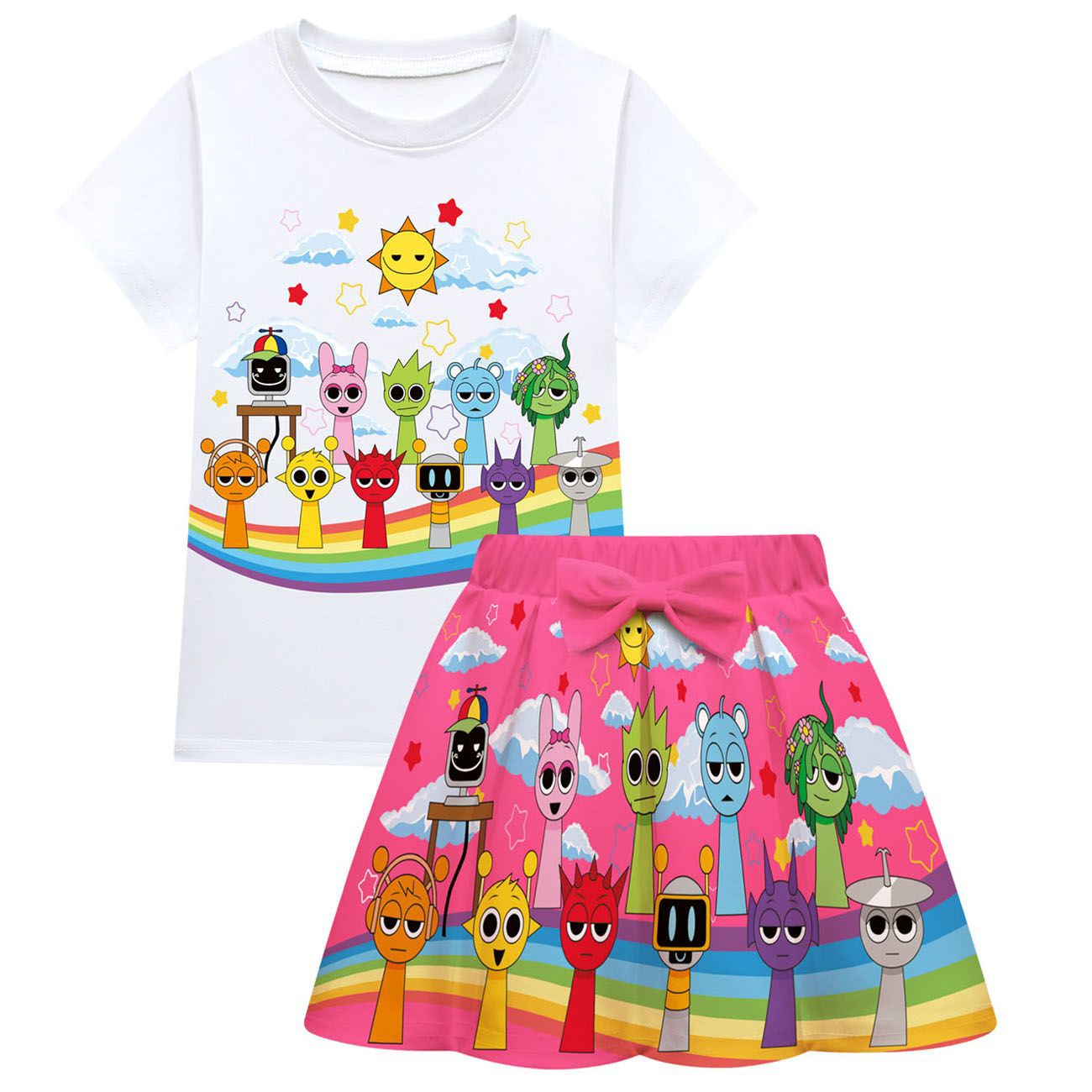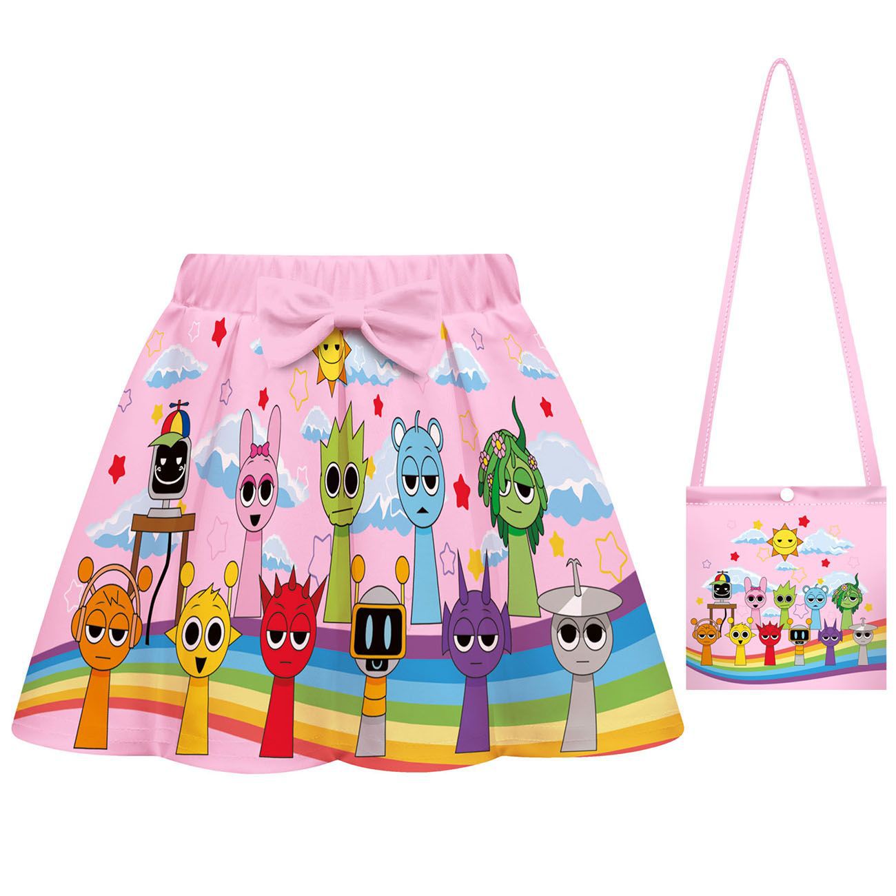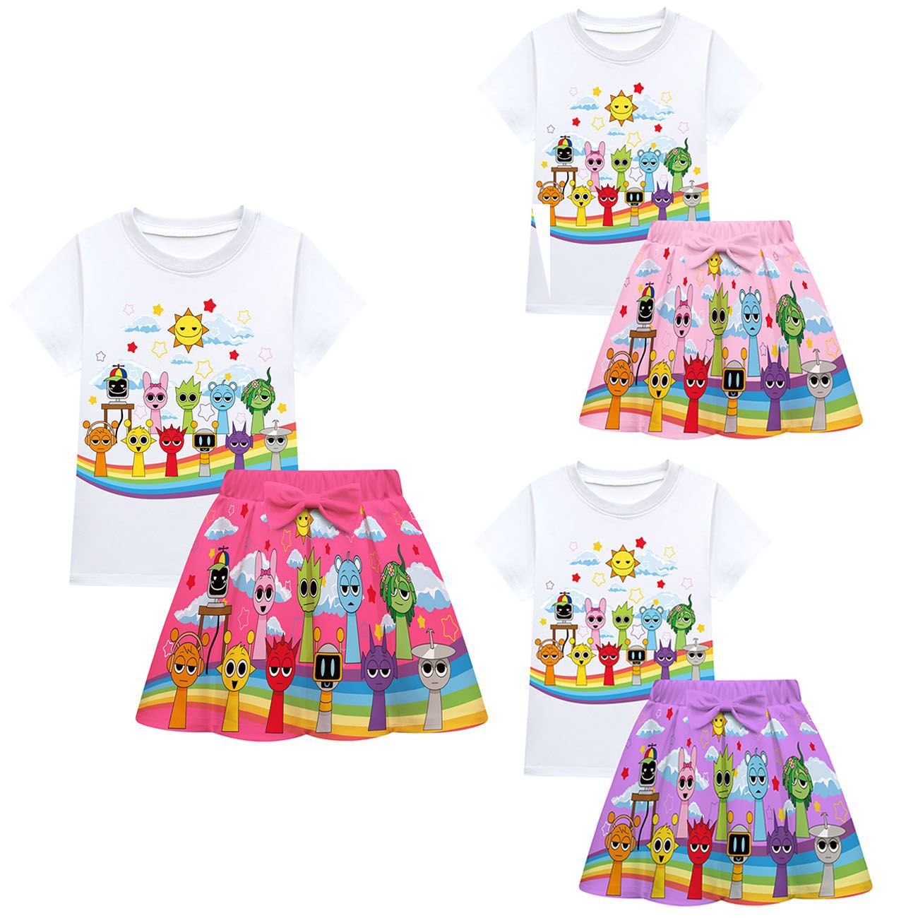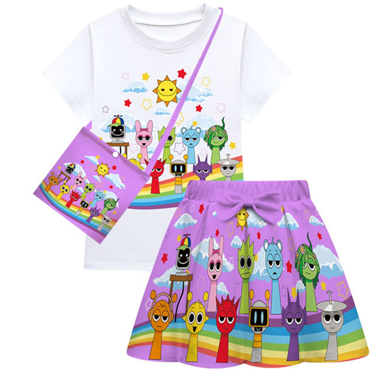 새로운 리듬 박스 Sprunki Plush 소녀 짧은 소매 주름 치마 가방 3 피스 3186 82238스토어 가기