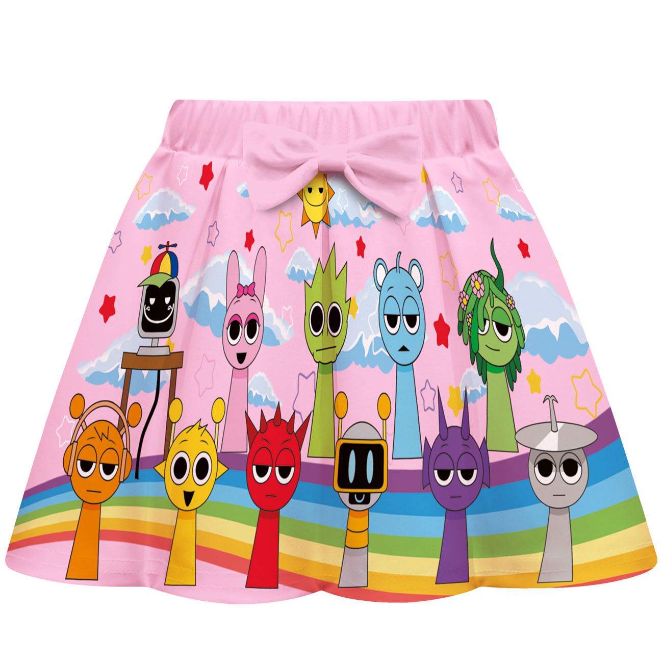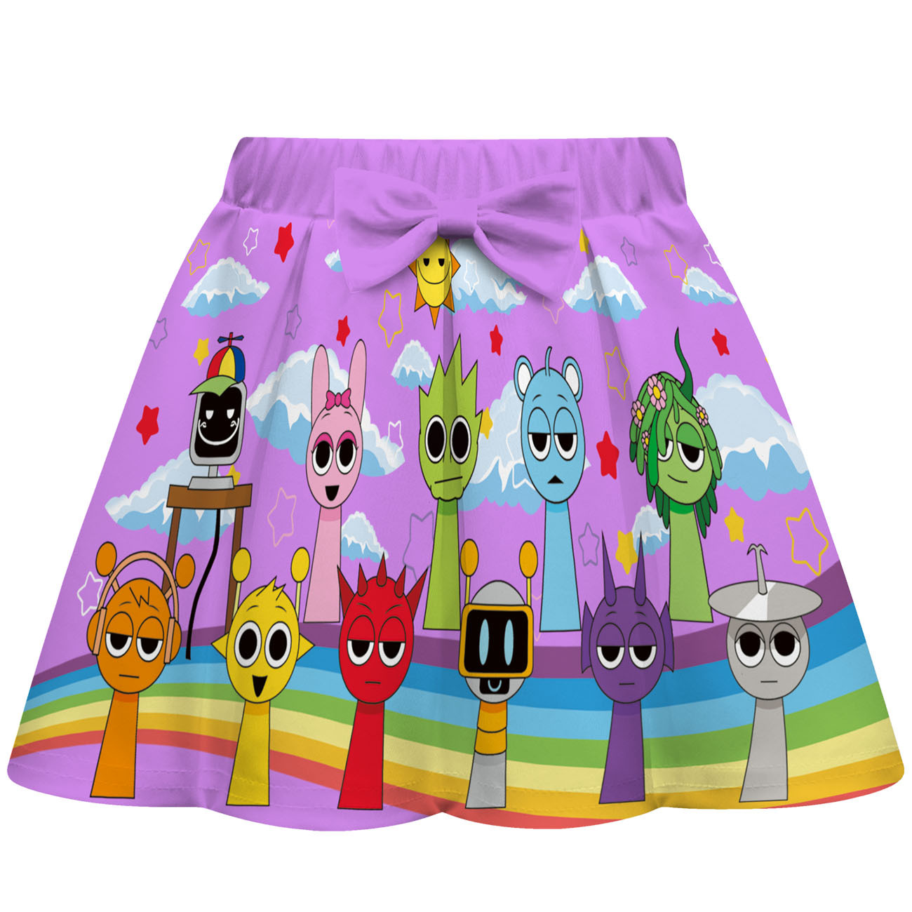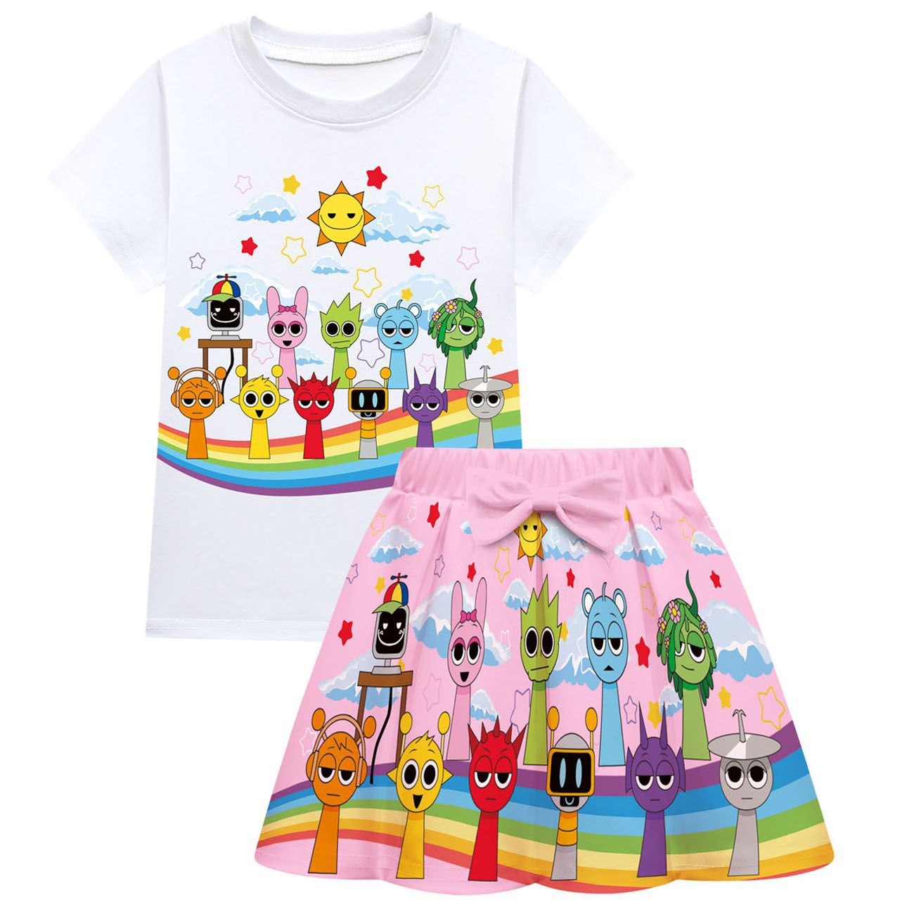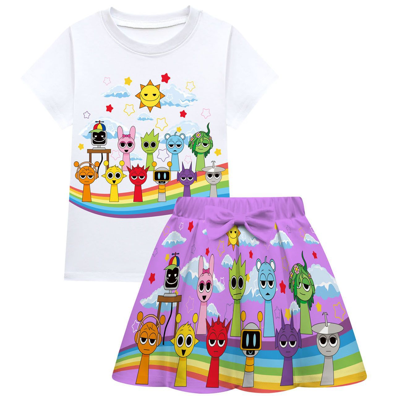 새로운 리듬 박스 Sprunki Plush 소녀 짧은 소매 주름 치마 가방 3 피스 3186 82238스토어 가기