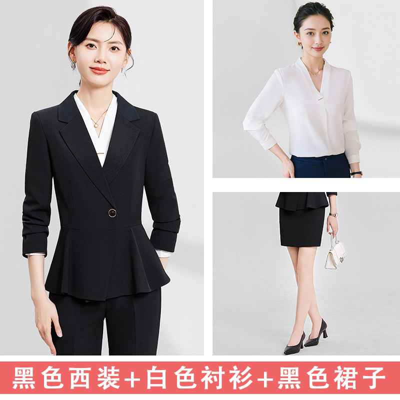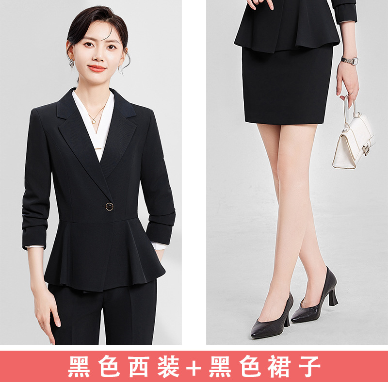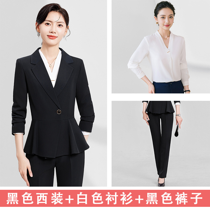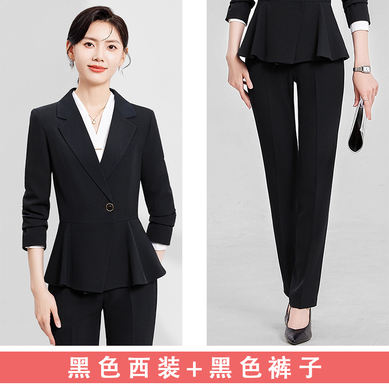 검은 세트 세트 여성의 봄과 가을 2025 새로운 뷰티 살롱 쥬얼리 숍 전문 툴링 호텔 프론트 데스크 작업복