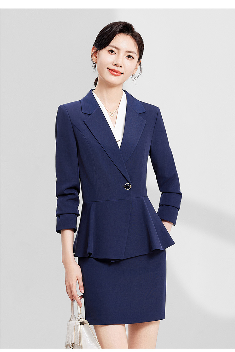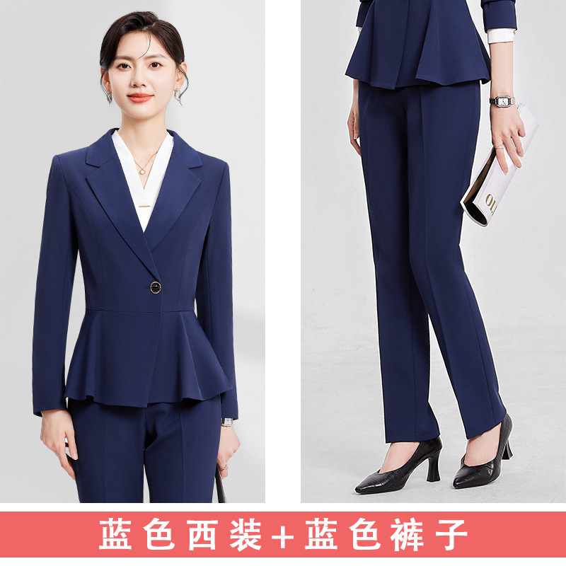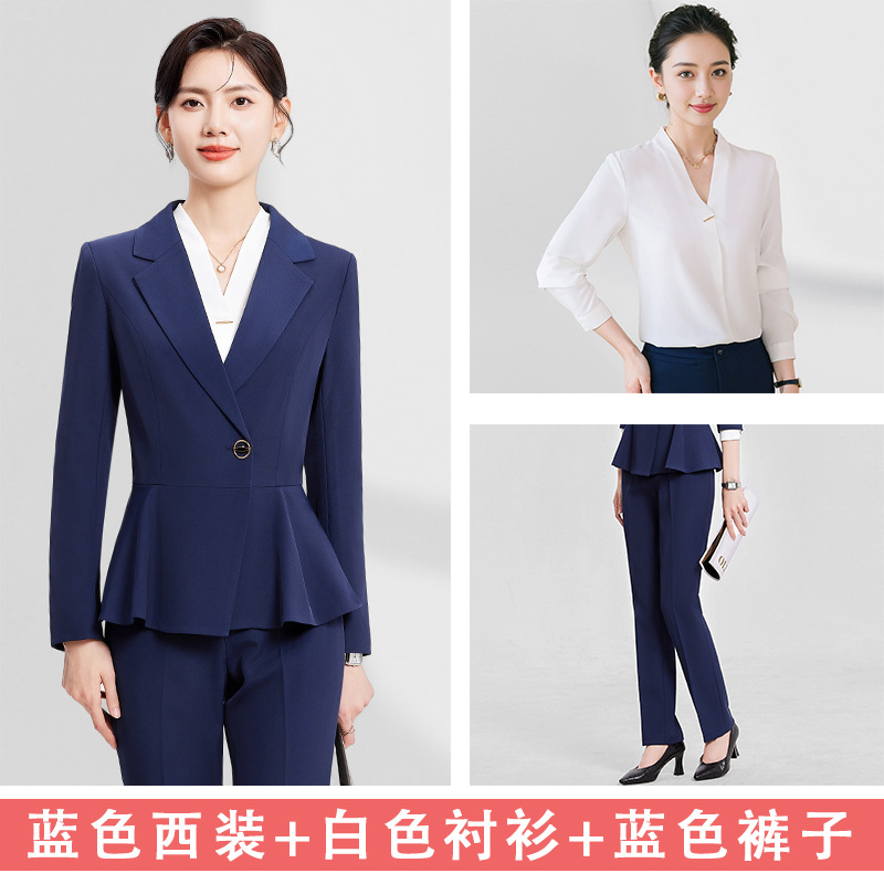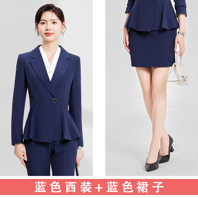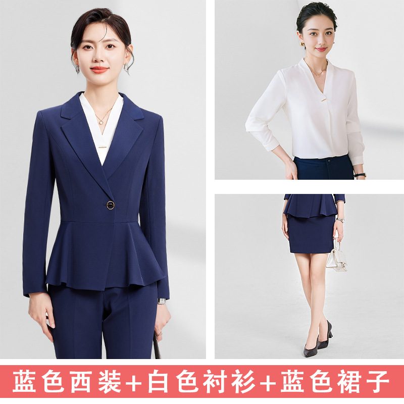• 파란색 정장 + 흰색 셔츠 + 파란색 스커트