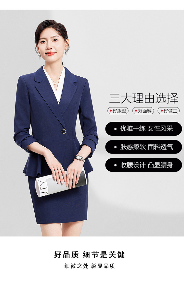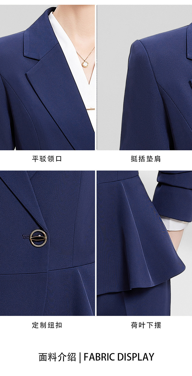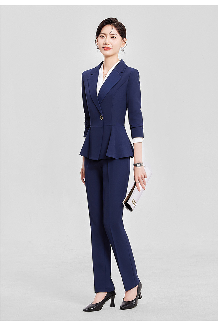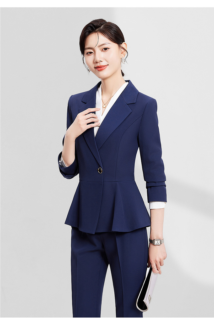 • 파란색 정장 + 흰색 셔츠 + 파란색 스커트