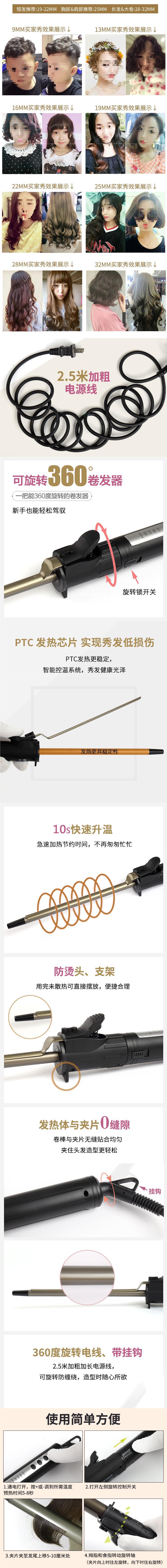 회전 전기 컬링로드 32 대용량 전문 스튜디오 메이크업 아티스트 헤어 컬링로드 어린이 스몰 사이즈 초정밀 컬링 아이언