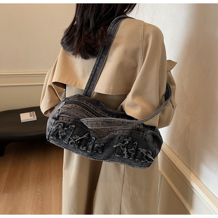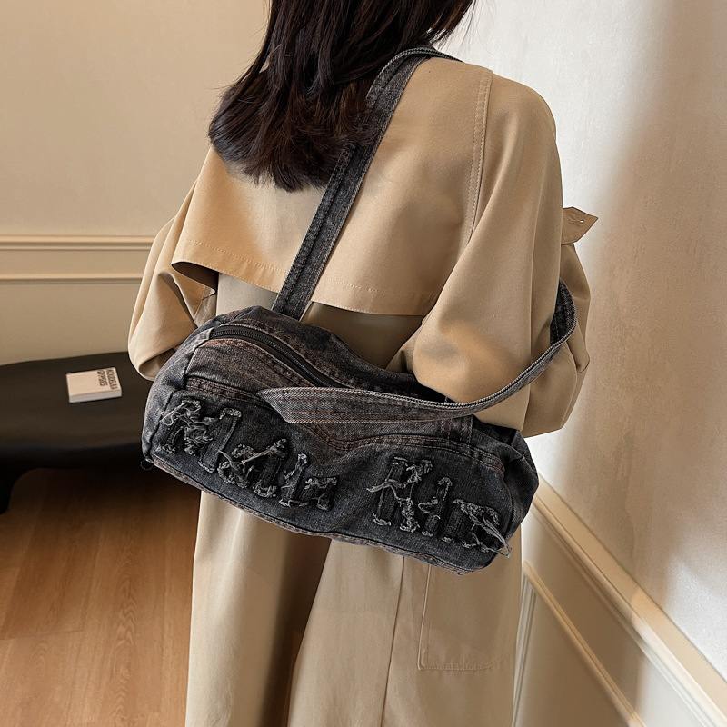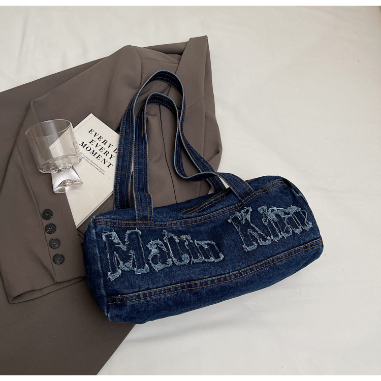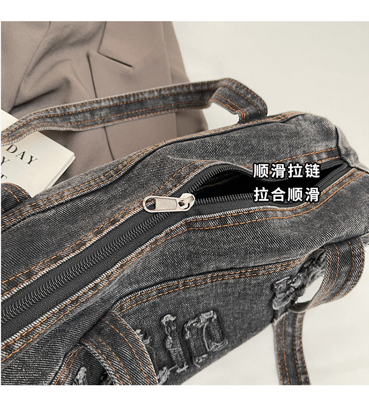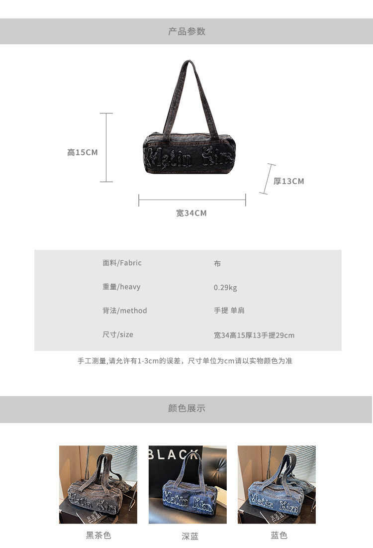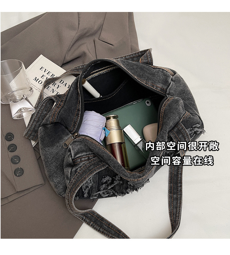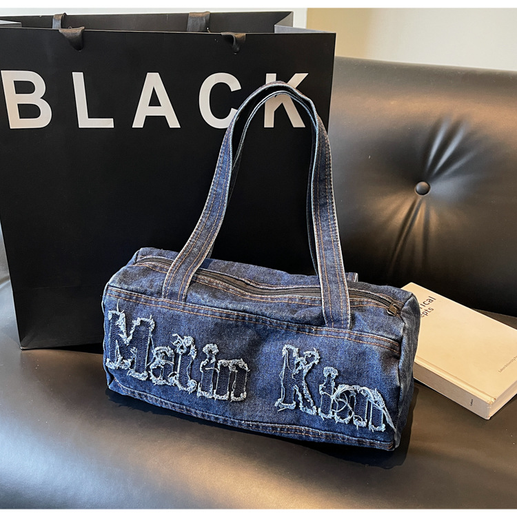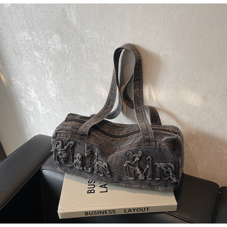 한국어 자수 워싱 데님 숄더백 대용량 여행 피트니스 보스턴백 2025 신상스토어 가기