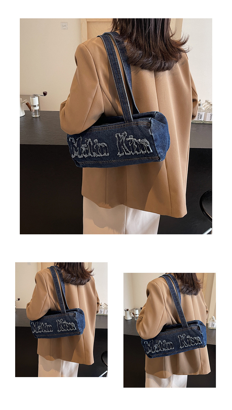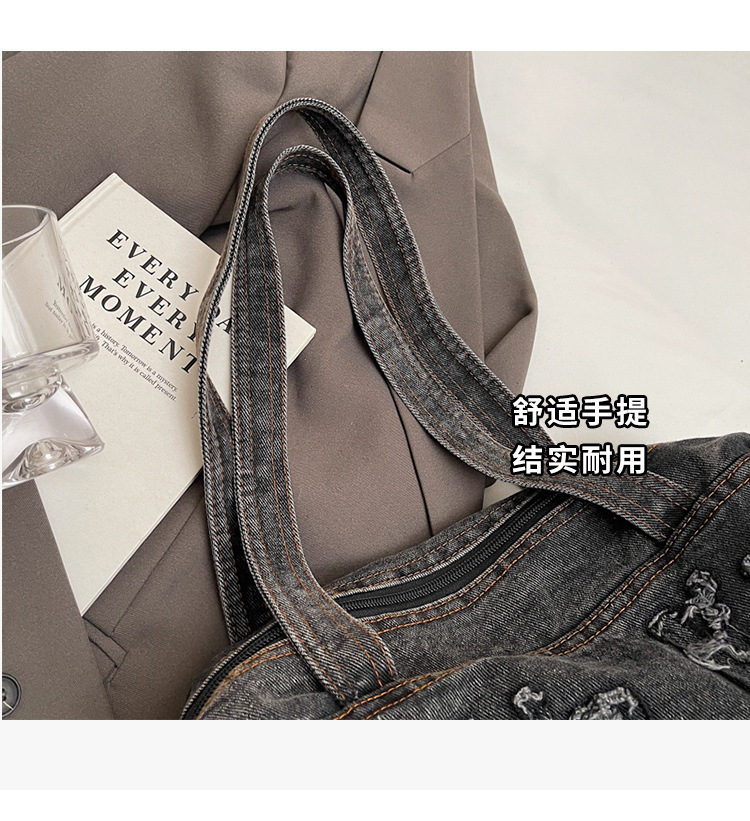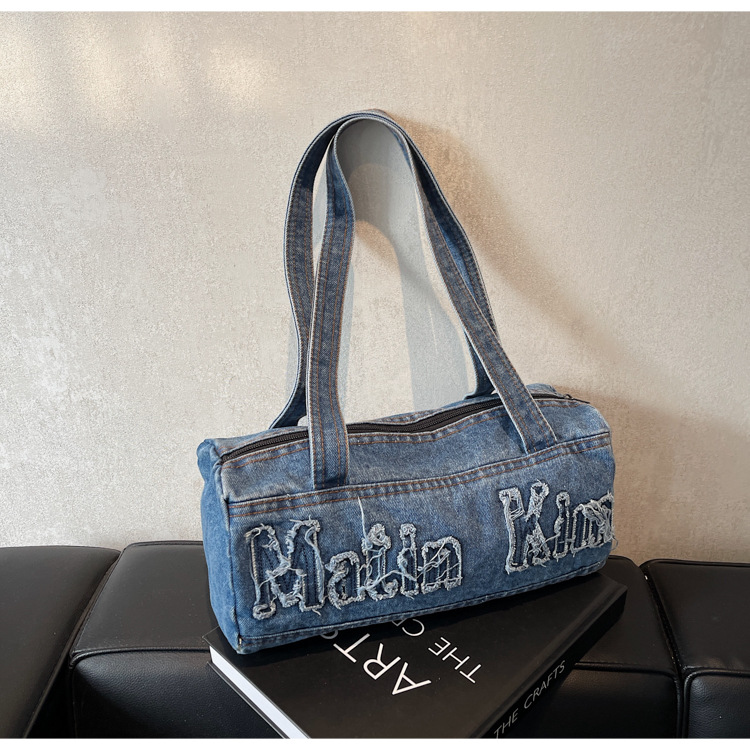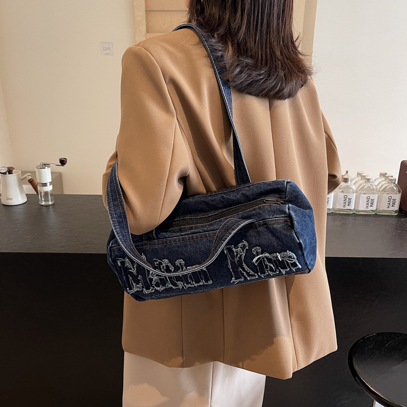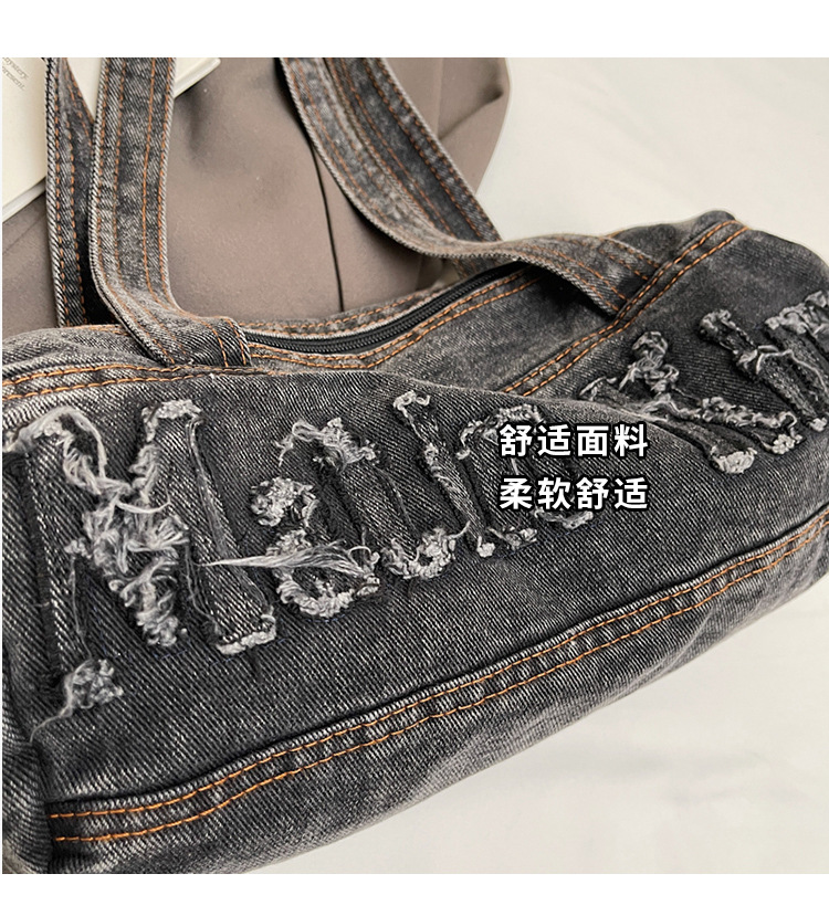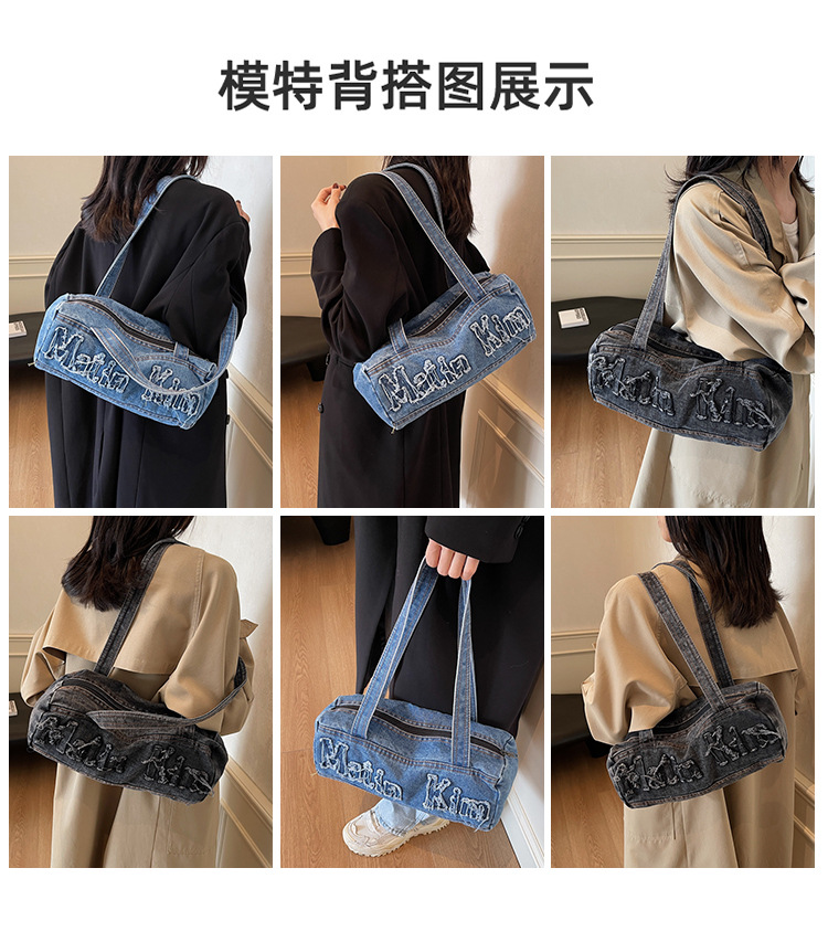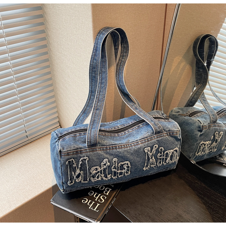 한국어 자수 워싱 데님 숄더백 대용량 여행 피트니스 보스턴백 2025 신상스토어 가기