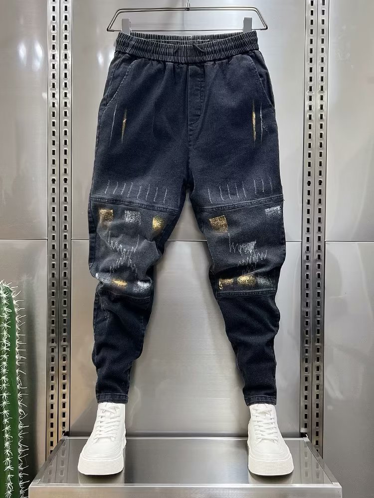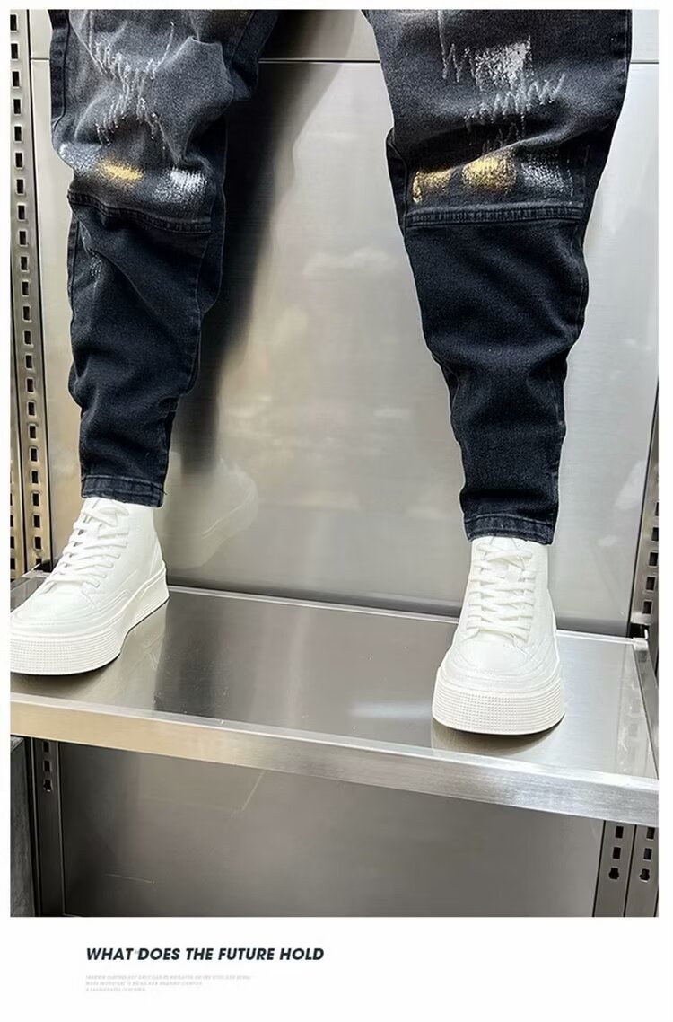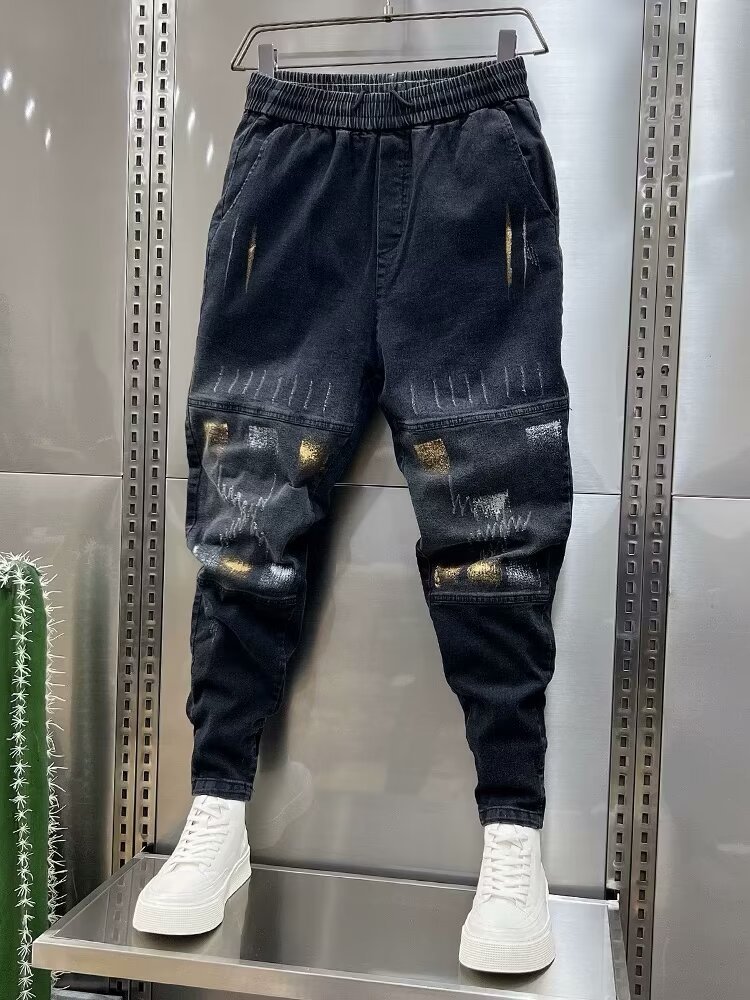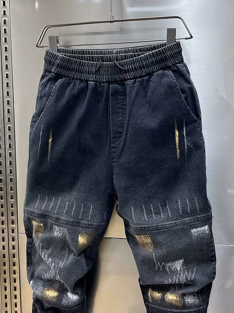 봄과 여름 청바지 남성 트렌디 한 브랜드 2025 느슨한 스키니 바지 한국 스타일 유행 캐주얼 스트레치 자른 하렘 바지스토어 가기