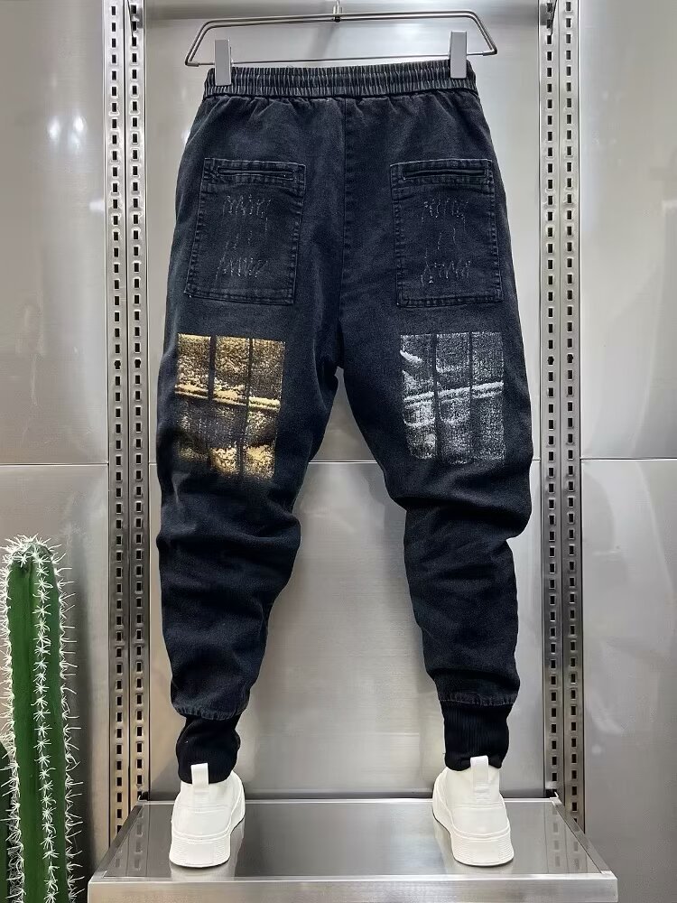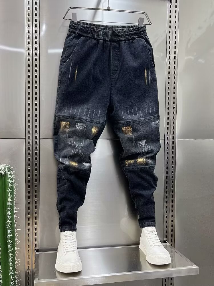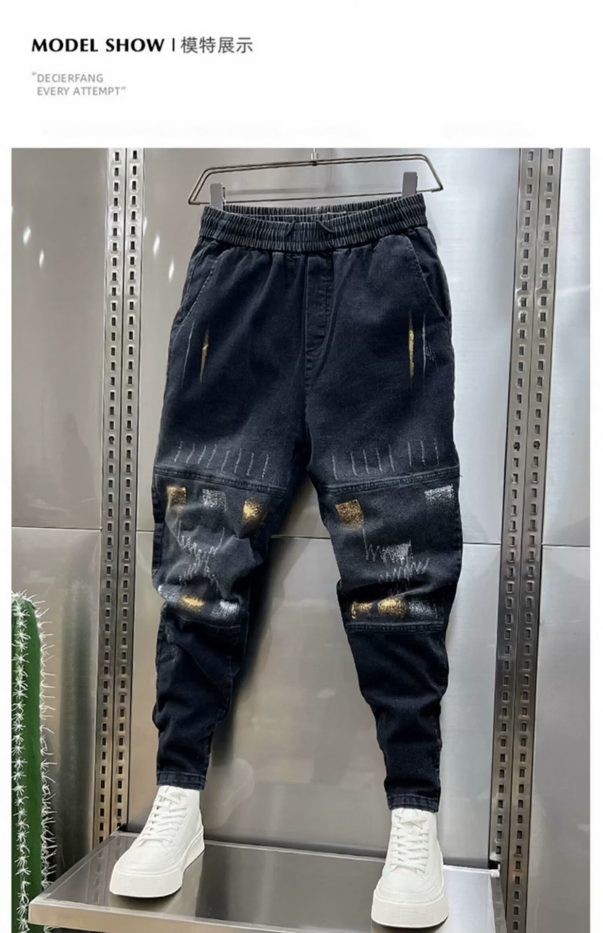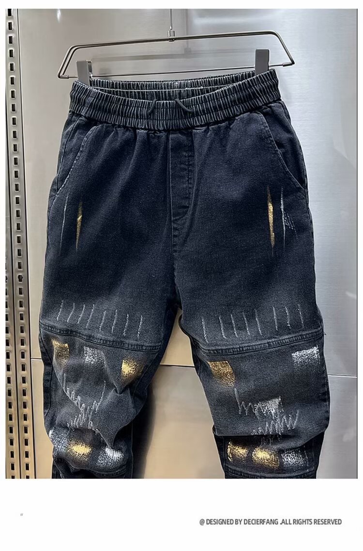 봄과 여름 청바지 남성 트렌디 한 브랜드 2025 느슨한 스키니 바지 한국 스타일 유행 캐주얼 스트레치 자른 하렘 바지