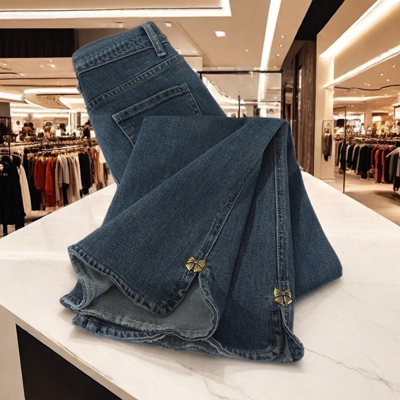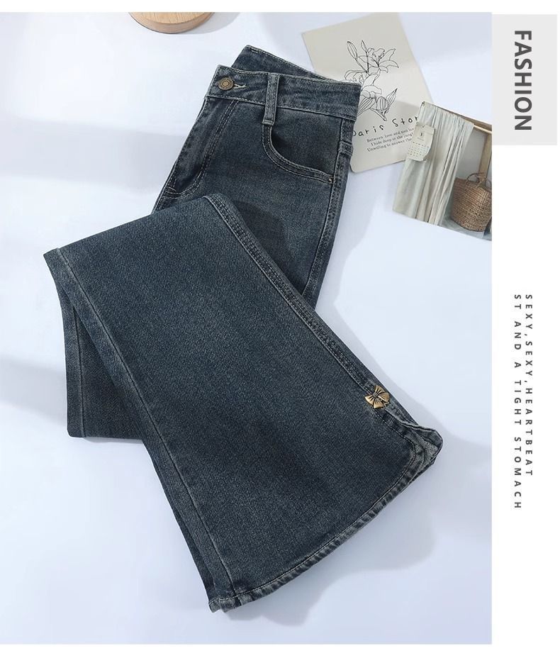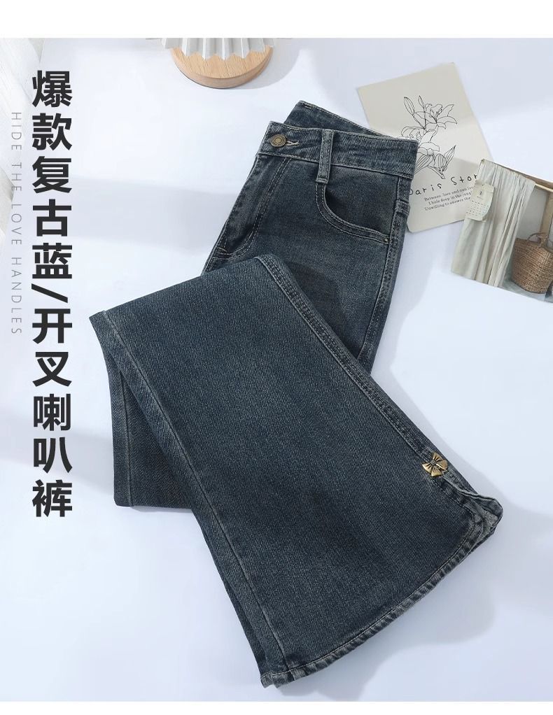 Shanli Dadi Retro High Waist Micro La Jeans 여성의 봄과 가을 새로운 도착 플러스 사이즈 통통녀 분할 푸시스토어 가기
