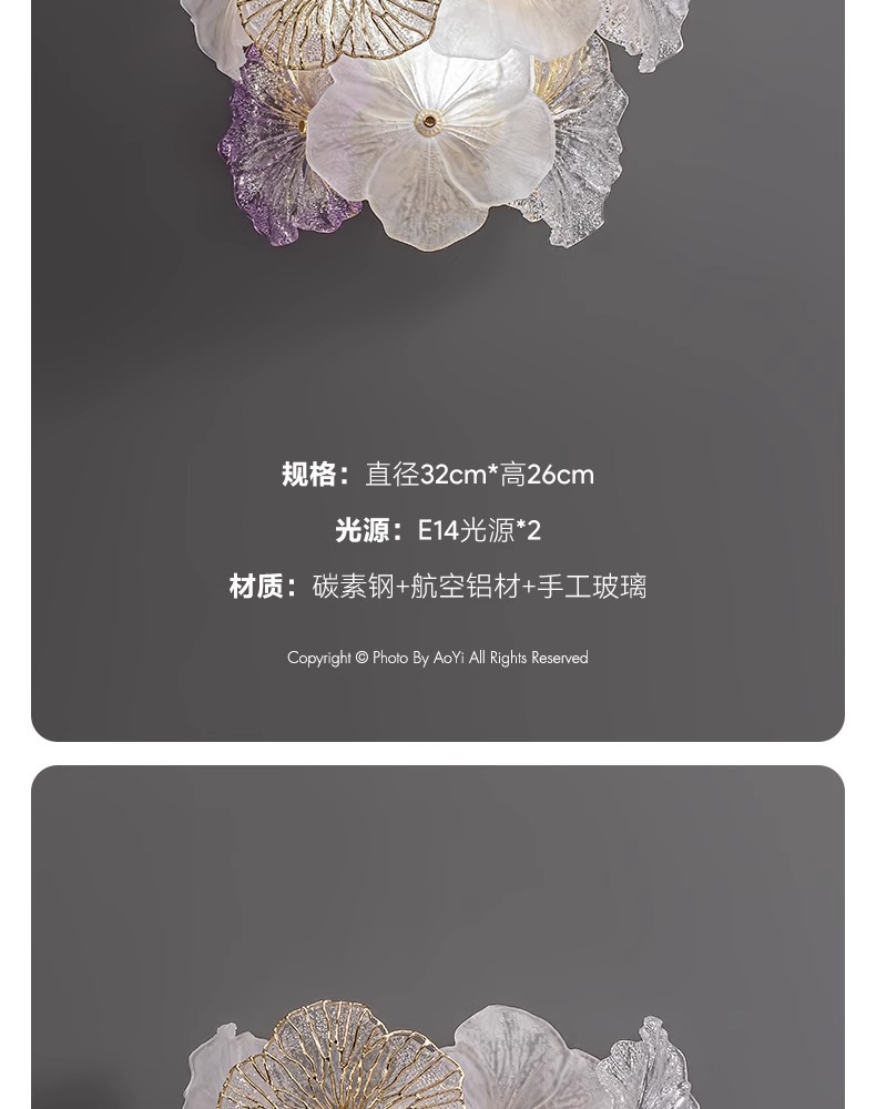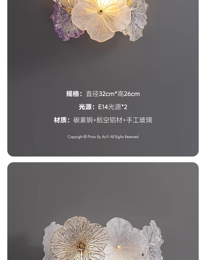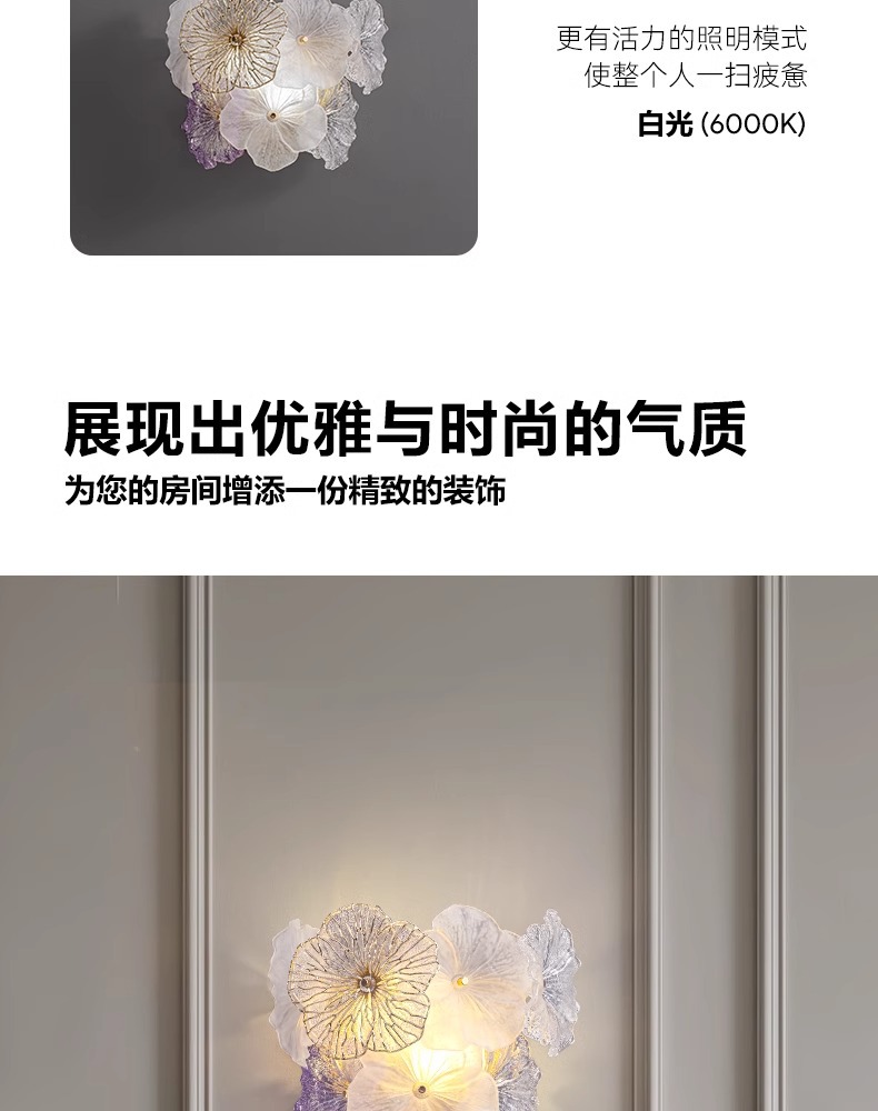 프랑스 스타일 가벼운 고급 벽 램프 거실 배경 벽 장식 램프 현대 간단한 유리 꽃 입구 벽 장착 램프 새로운 스타일스토어 가기