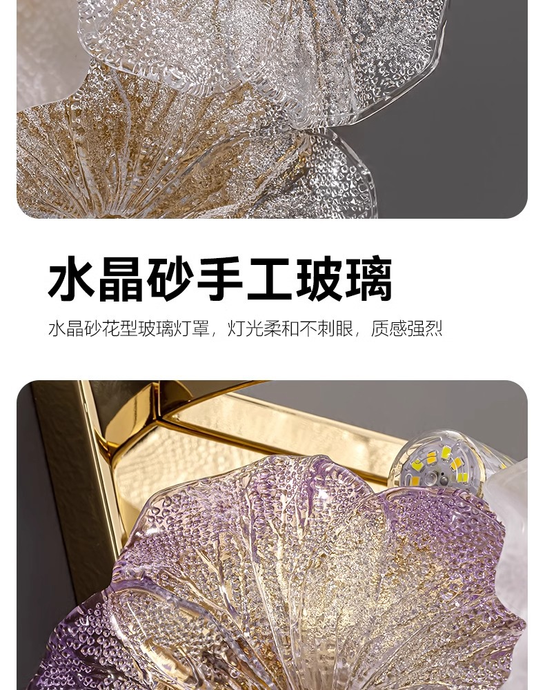 프랑스 스타일 가벼운 고급 벽 램프 거실 배경 벽 장식 램프 현대 간단한 유리 꽃 입구 벽 장착 램프 새로운 스타일