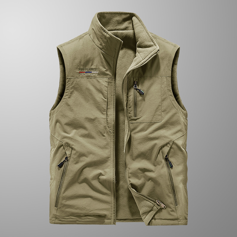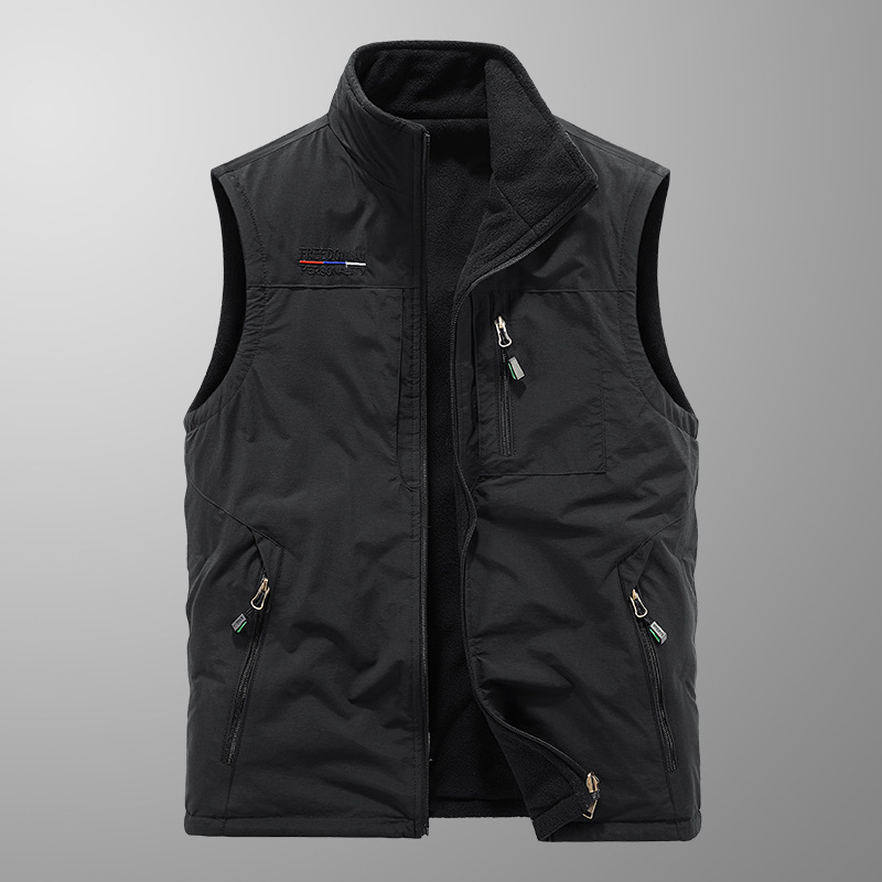 가을과 겨울 기모 두꺼운 남성 중년 및 노인 야외 스포츠 조끼 빠른 건조 멀티 포켓 양면 캐주얼 크로스 보더 재킷
