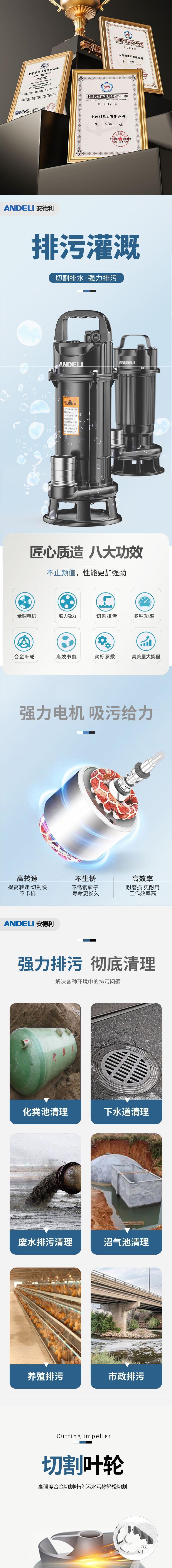 안드레 커팅 펌프 하수 펌프 분뇨 펌프 농업 진흙 잠수정 펌프 가정용 정화조 220v 펌프 펌프스토어 가기