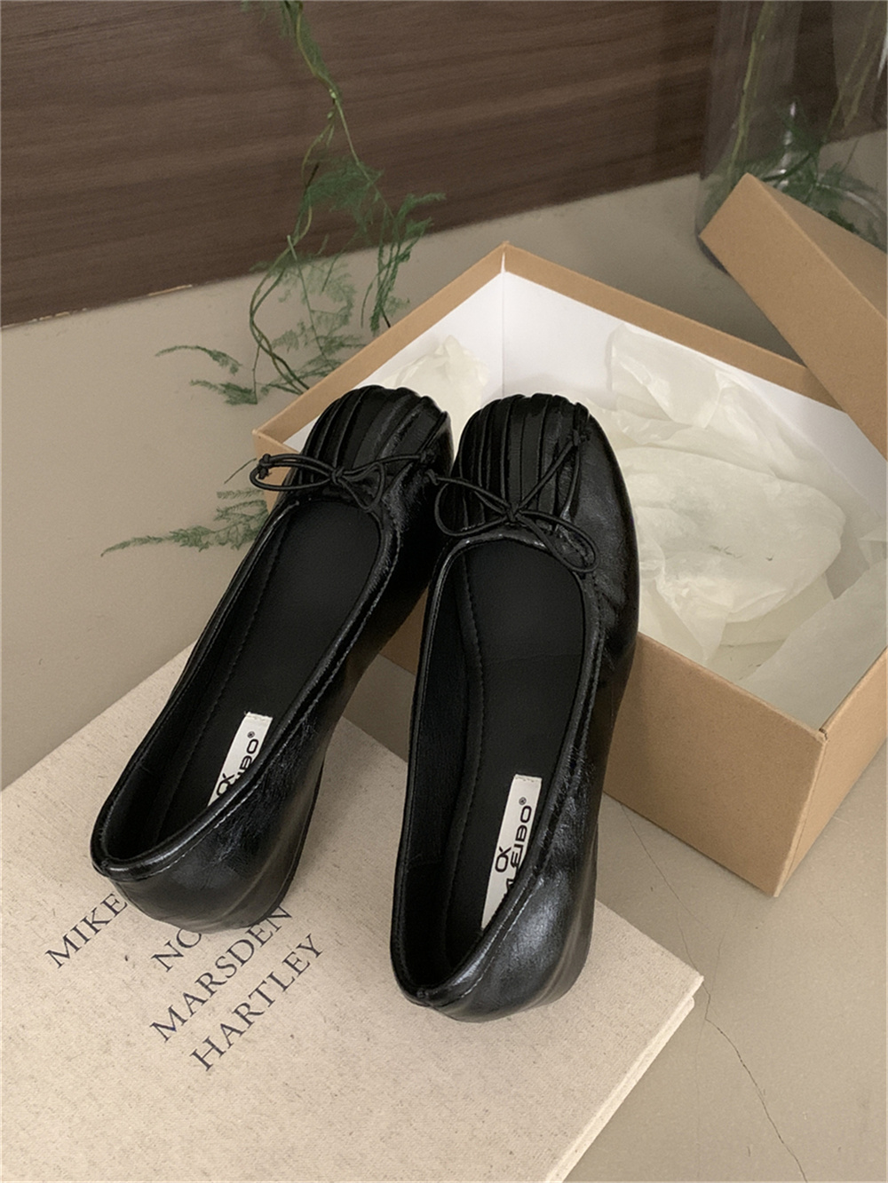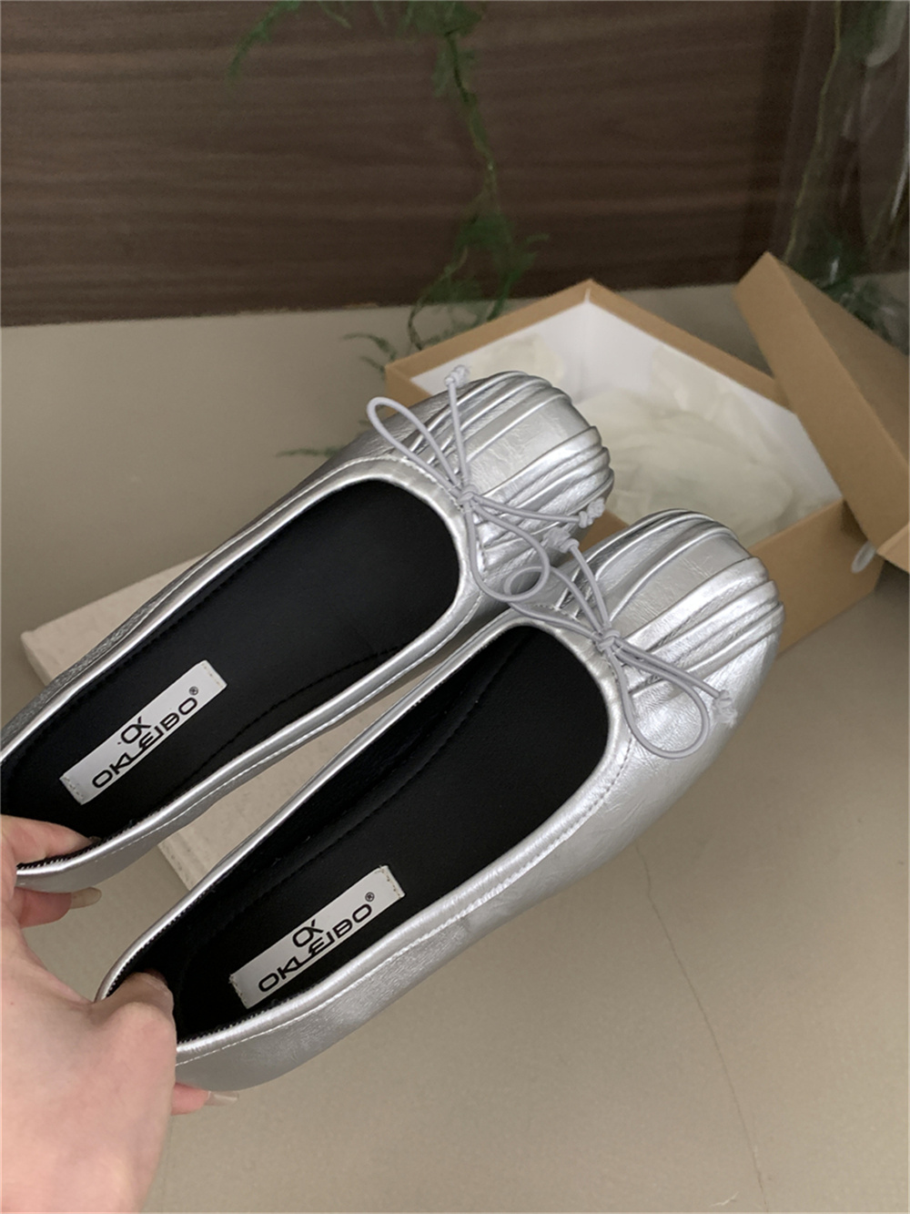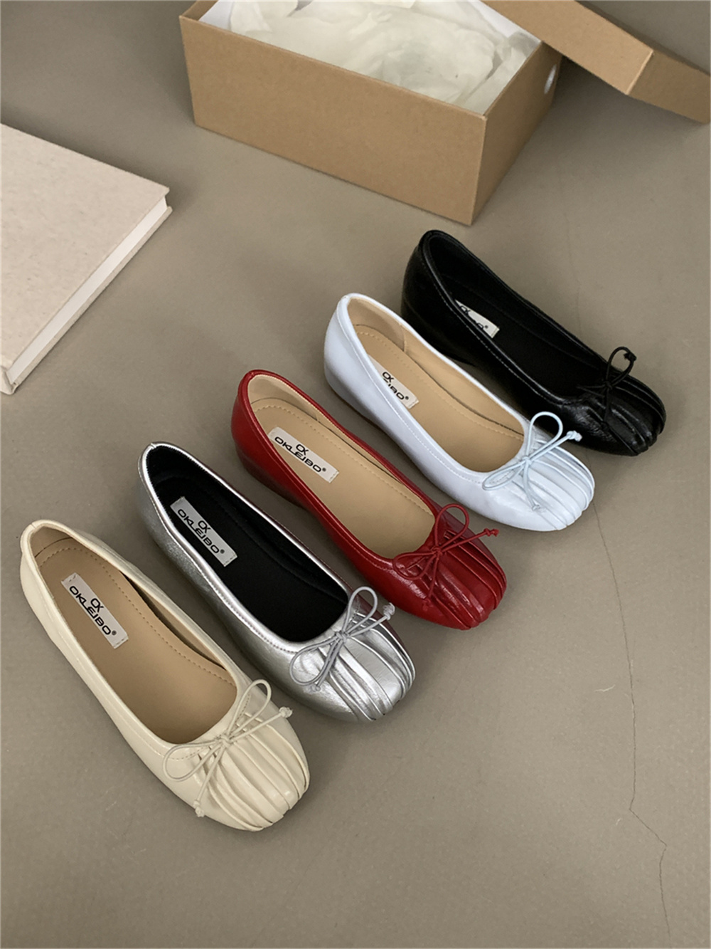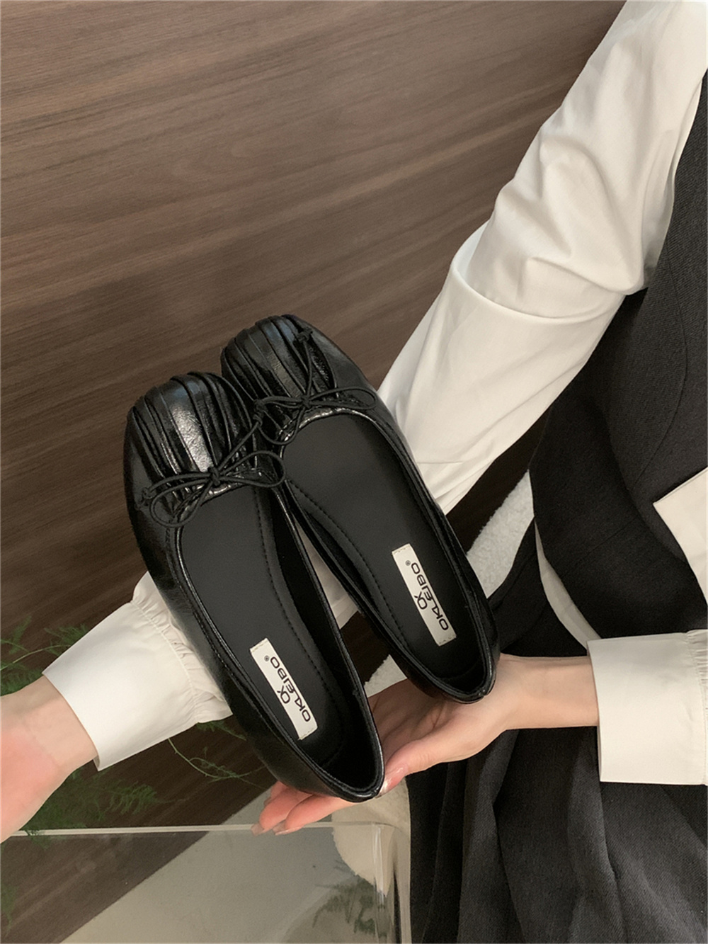틈새 주름 광장 발가락 얕은 입 활 신발 여성의 2025 봄 새로운 복고풍 높이 증가 소프트 단독 우유 신발