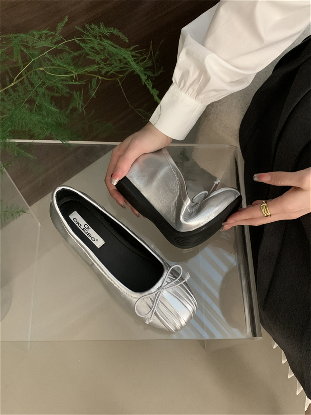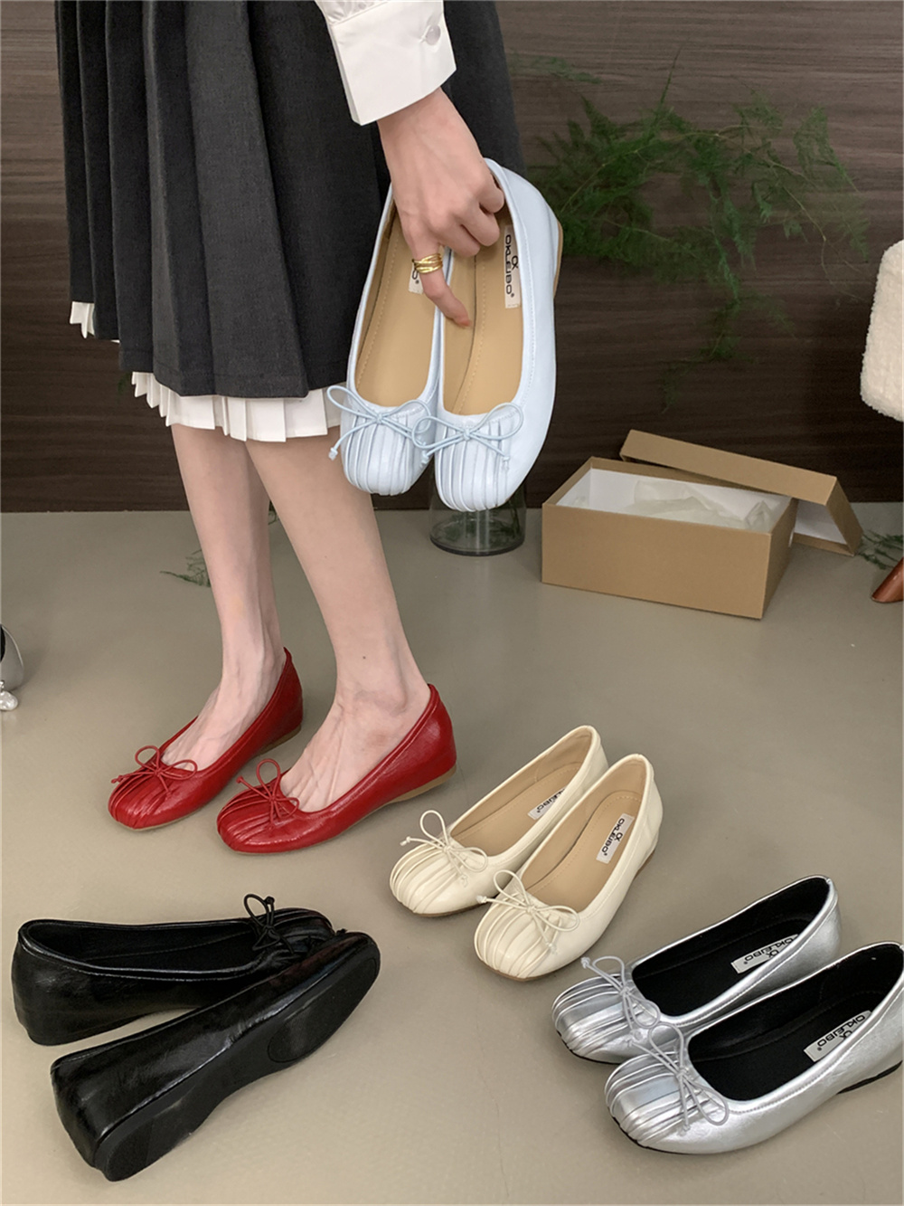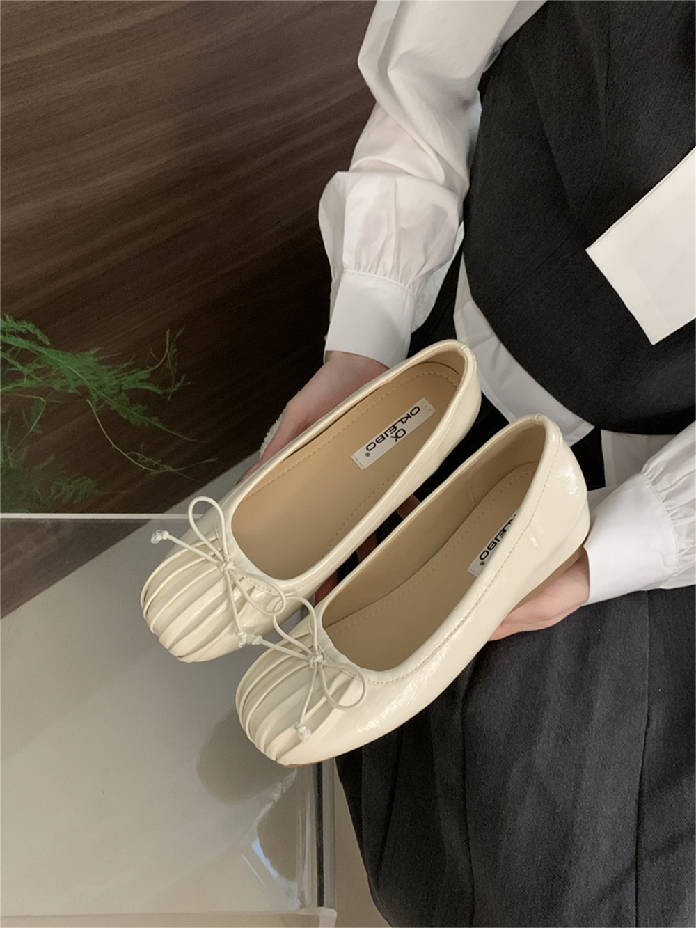 틈새 주름 광장 발가락 얕은 입 활 신발 여성의 2025 봄 새로운 복고풍 높이 증가 소프트 단독 우유 신발