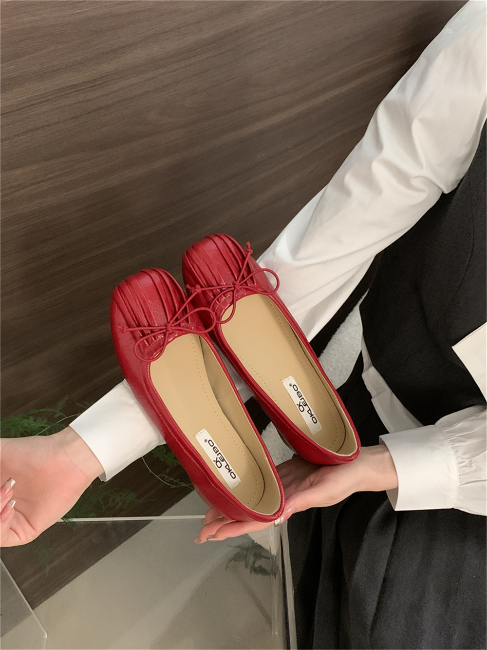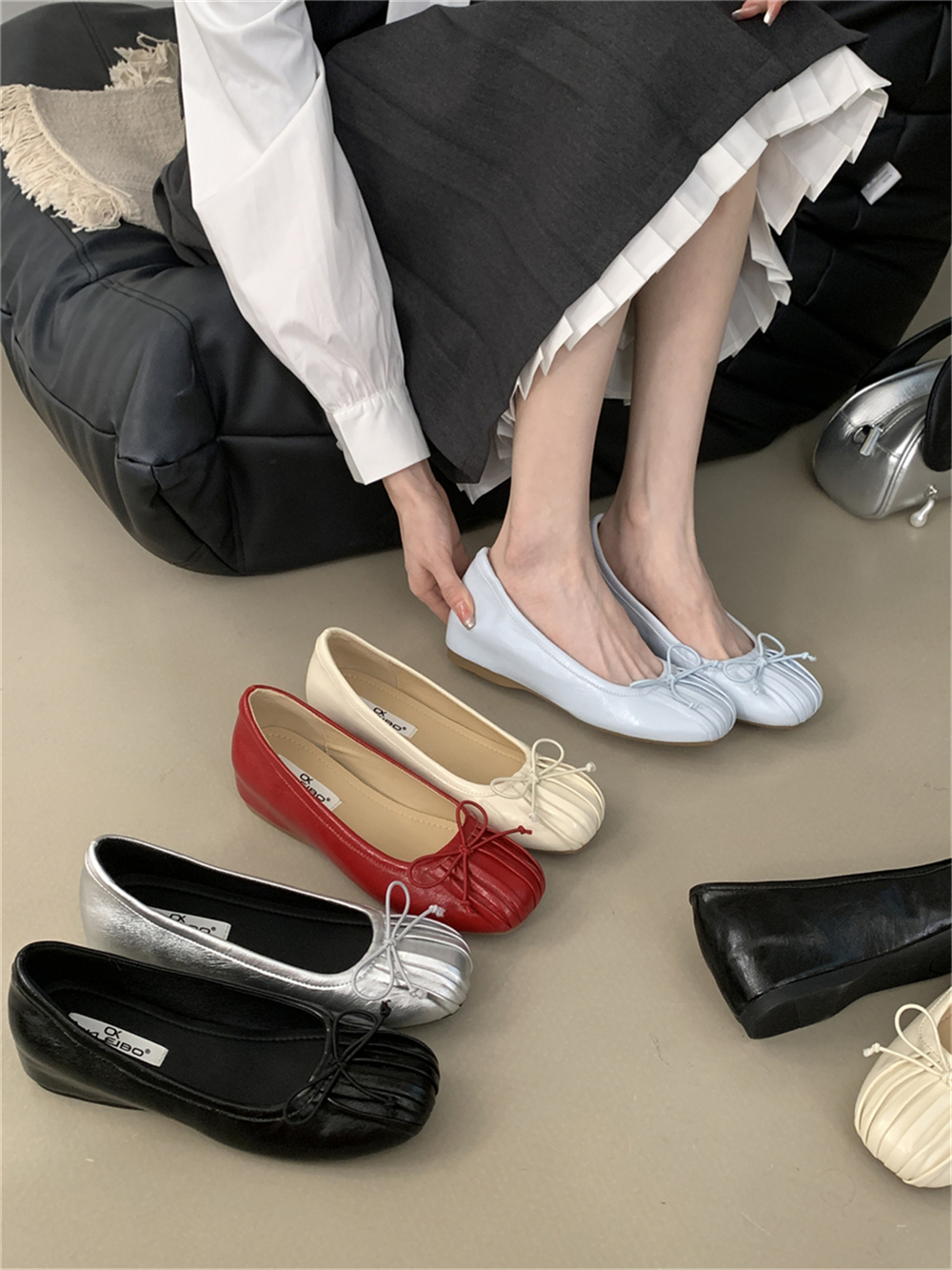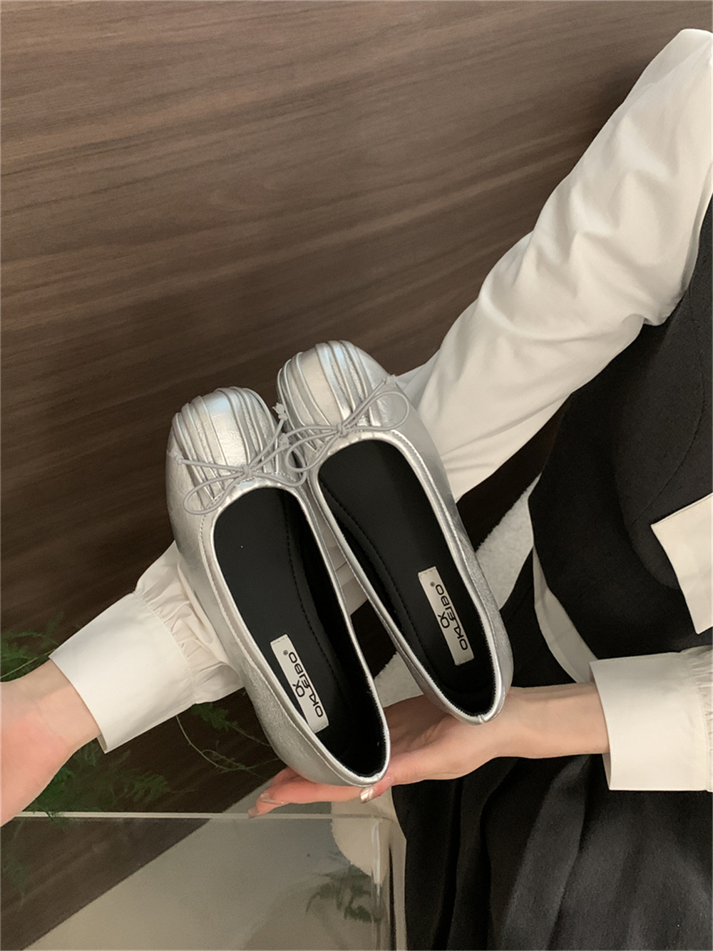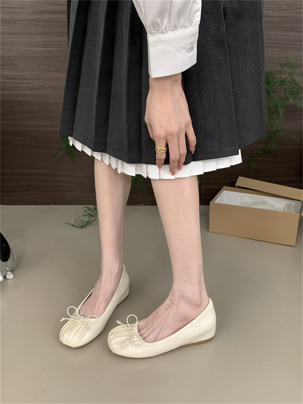 틈새 주름 광장 발가락 얕은 입 활 신발 여성의 2025 봄 새로운 복고풍 높이 증가 소프트 단독 우유 신발