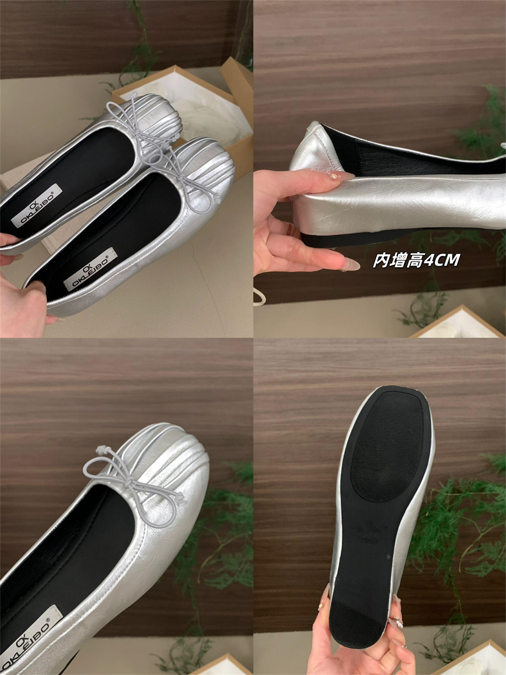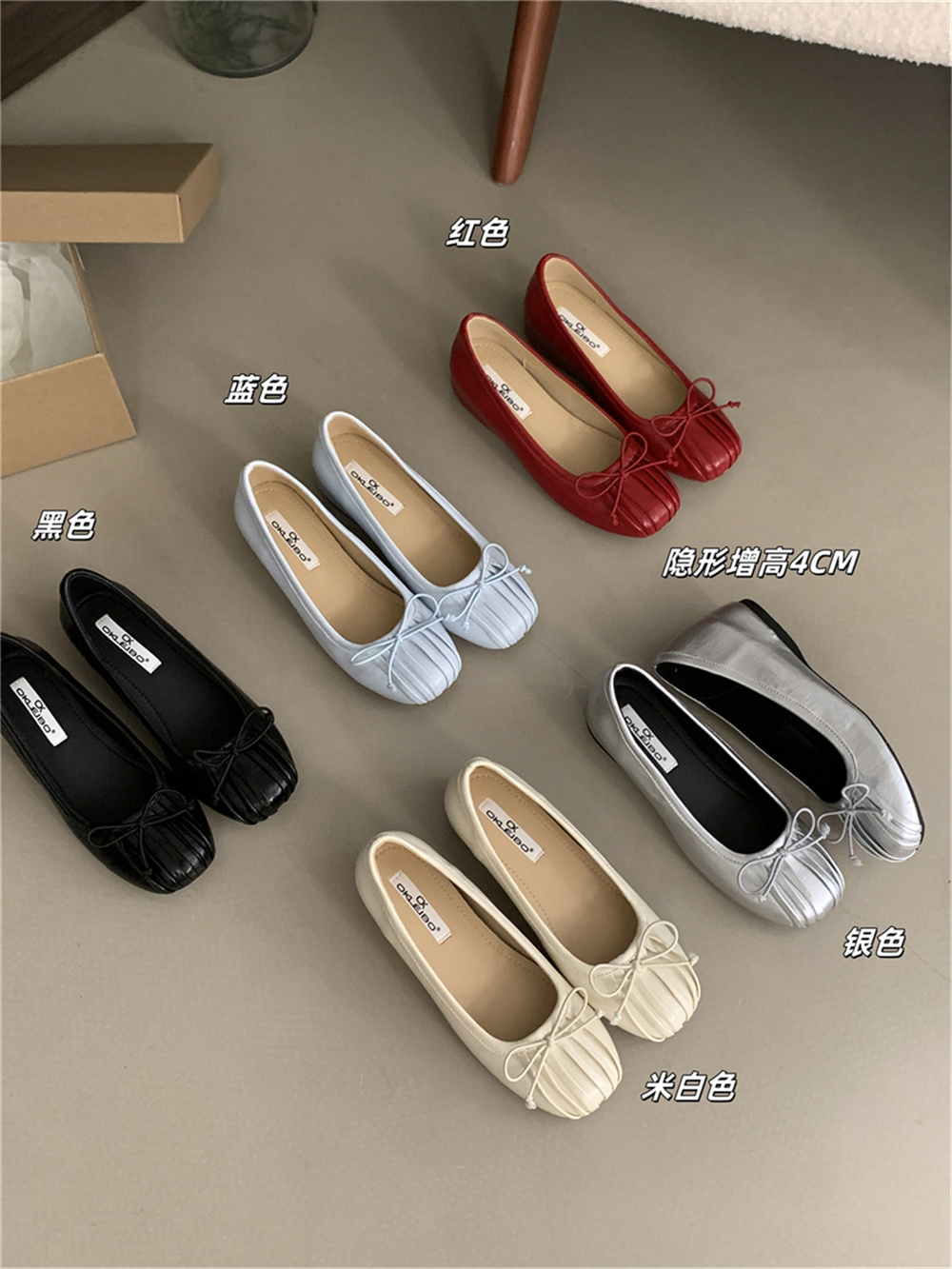 틈새 주름 광장 발가락 얕은 입 활 신발 여성의 2025 봄 새로운 복고풍 높이 증가 소프트 단독 우유 신발스토어 가기