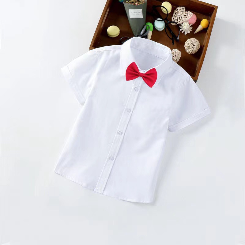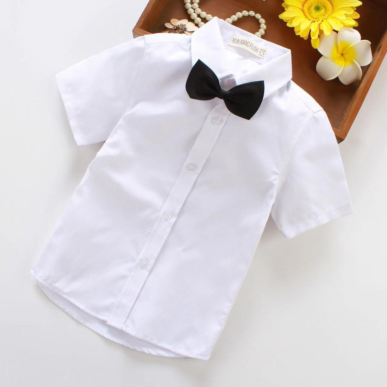 남학생 폴리에스터면 반팔 화이트 셔츠 여름 얇은 아기 캐주얼 어린이 화이트 셔츠 초등학생 공연 옷 교복스토어 가기