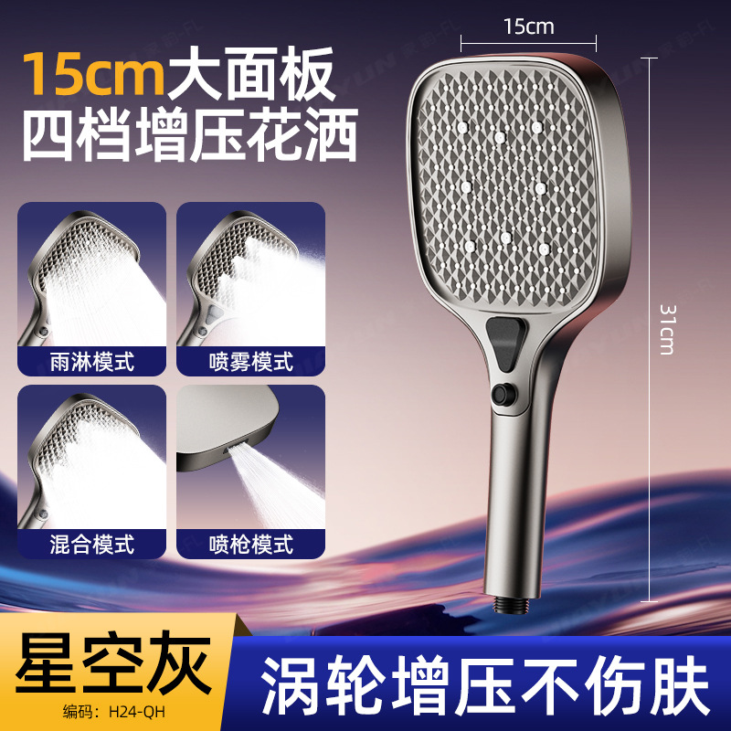 • [그레이세트4] 15cm 특대패널 슈퍼차지 샤워기 + 튜브 2m개