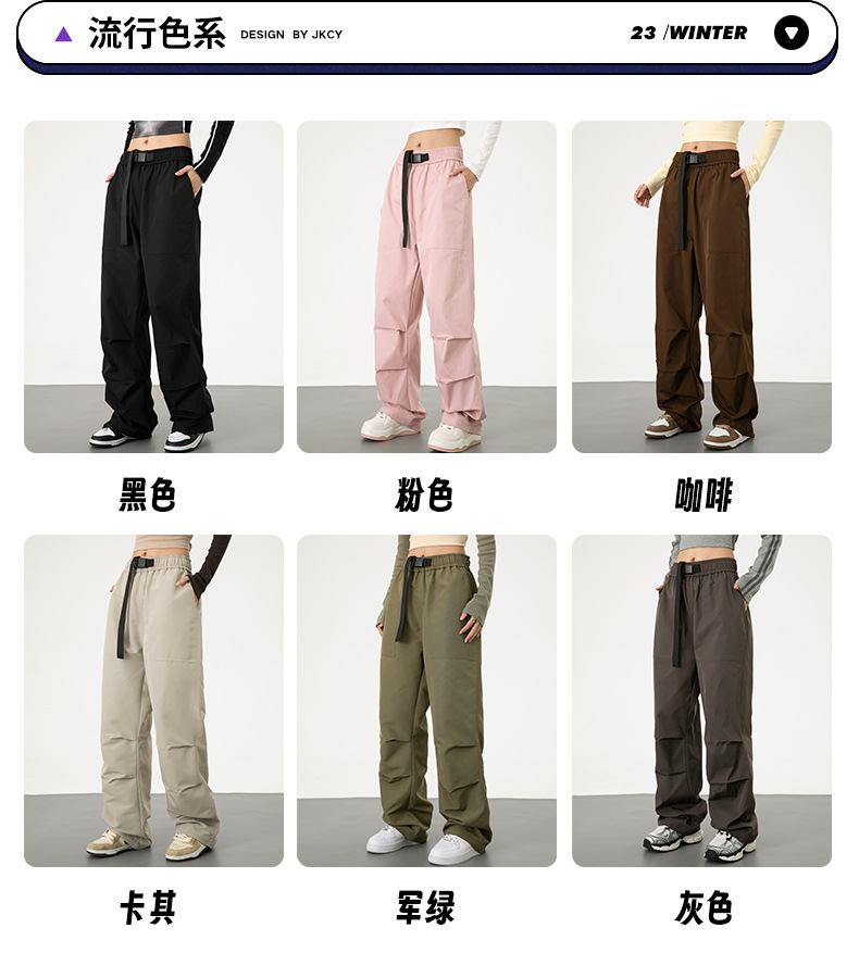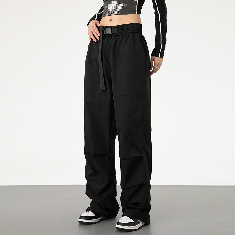 야외 짠 스포츠 툴링 바지 캐주얼 느슨한 봄과 가을 유니섹스 디자인 센스 낙하산 바지 블랙스토어 가기