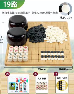 • 흑백 원형 상자 + 모조 옥 361개 + 두꺼운 나무 체스판 0.5개