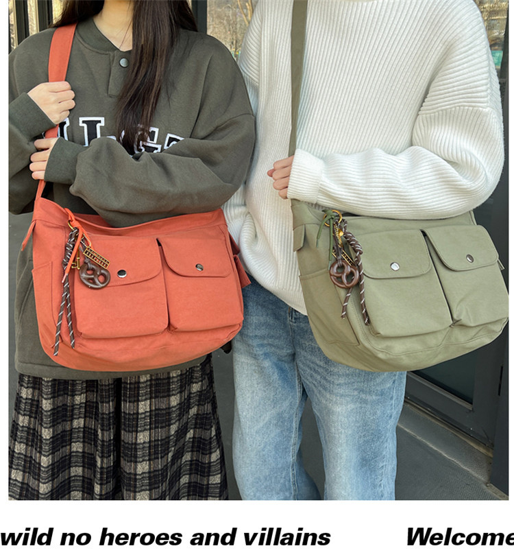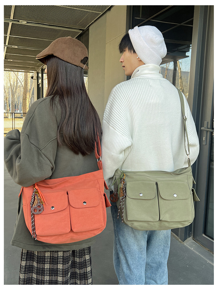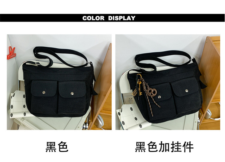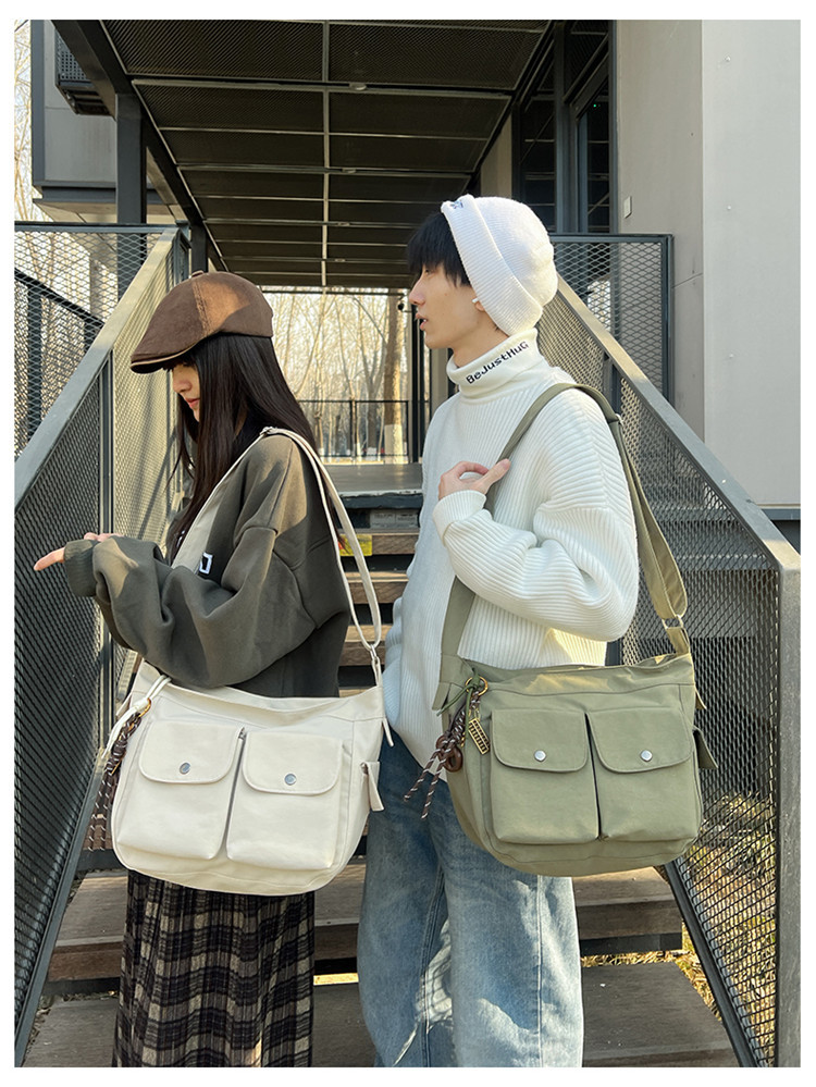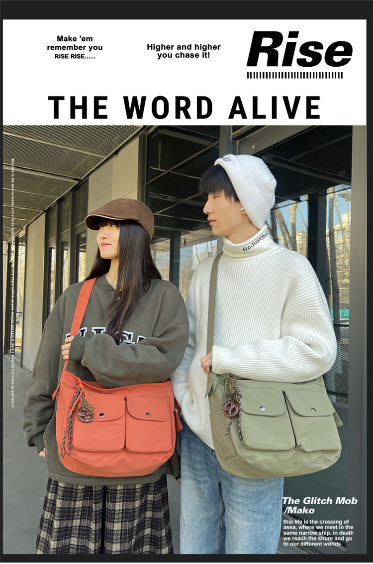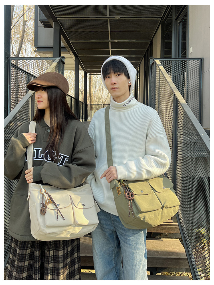 일본식 레트로 캐주얼 크로스 바디 백 여성 중학교 고등학교 학생 클래스 휴대용 캔버스 가방 남성용 대용량 숄더 백