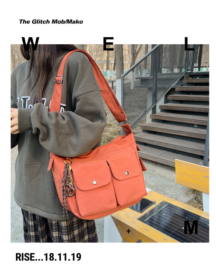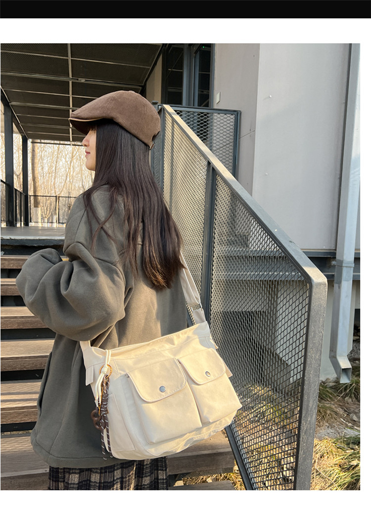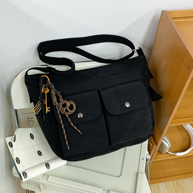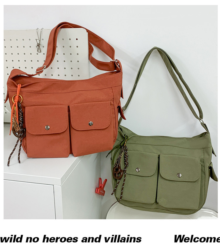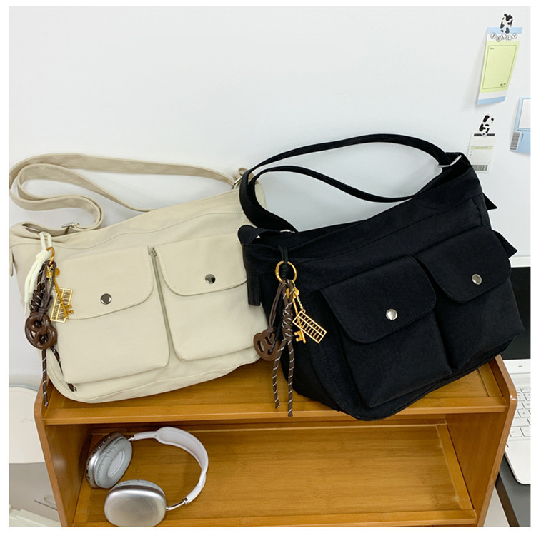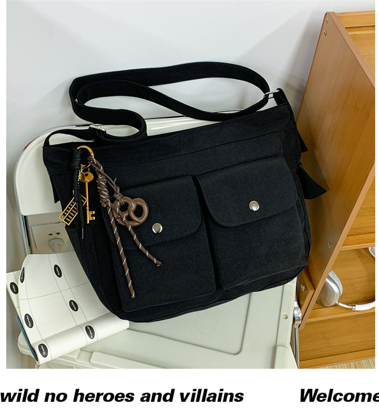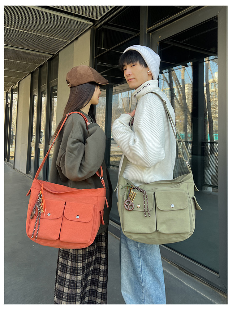 일본식 레트로 캐주얼 크로스 바디 백 여성 중학교 고등학교 학생 클래스 휴대용 캔버스 가방 남성용 대용량 숄더 백