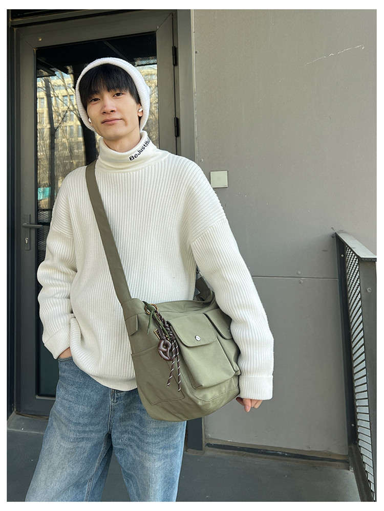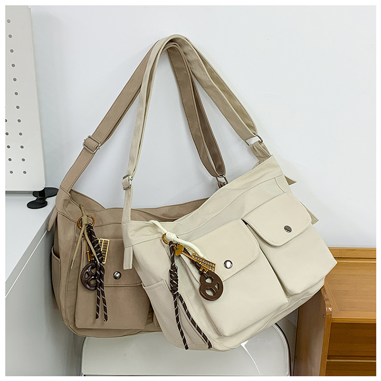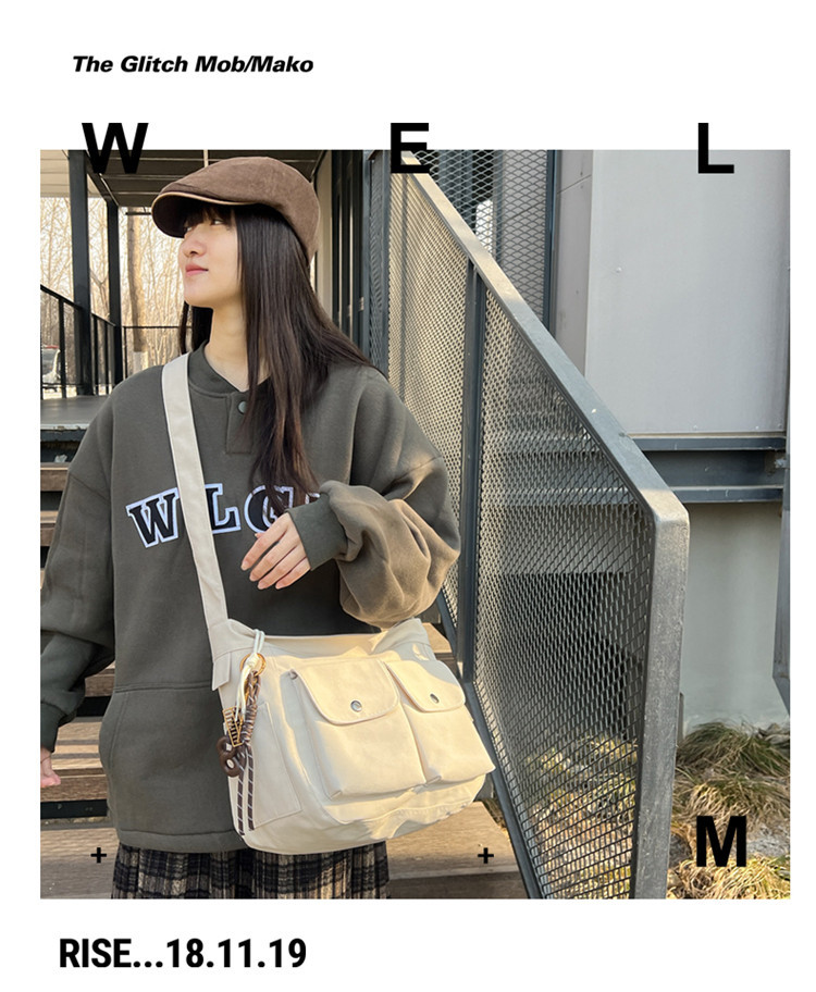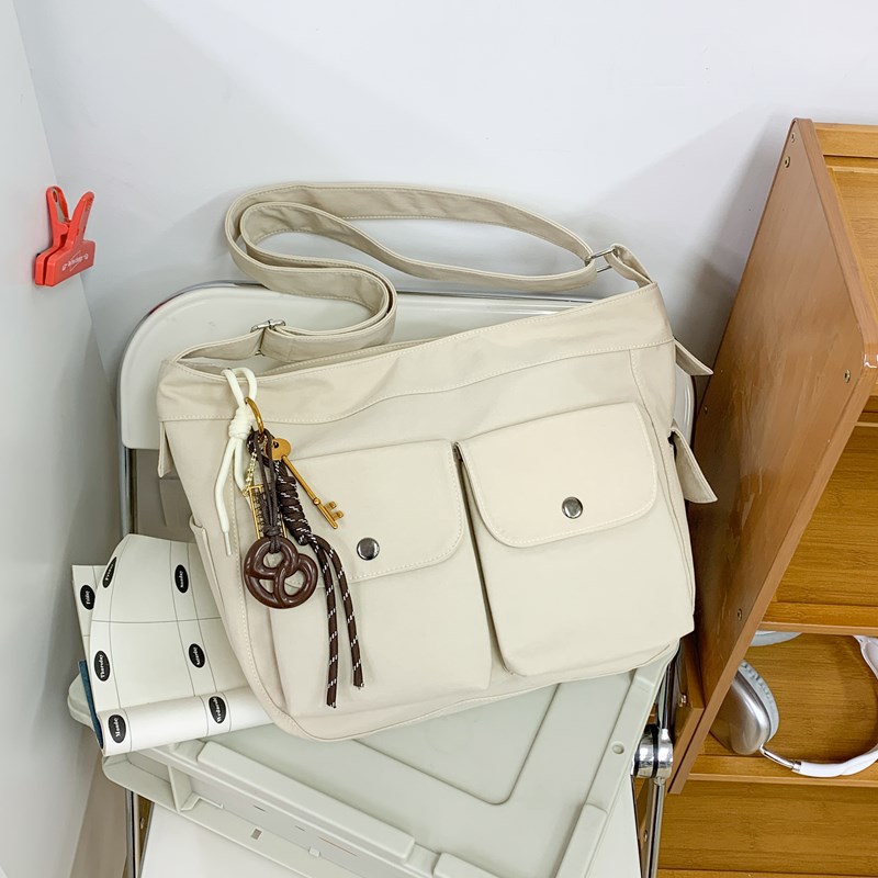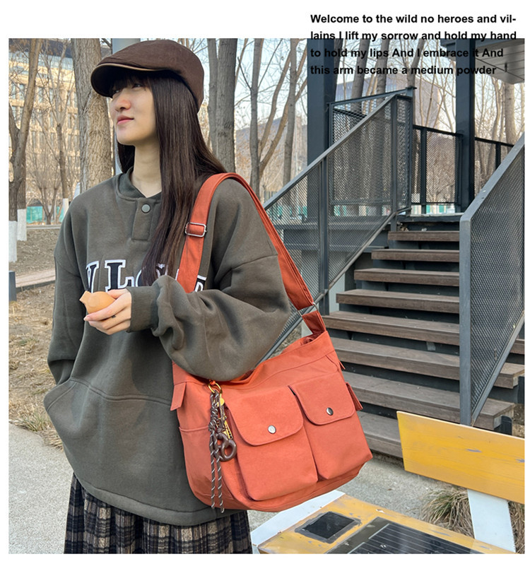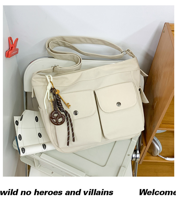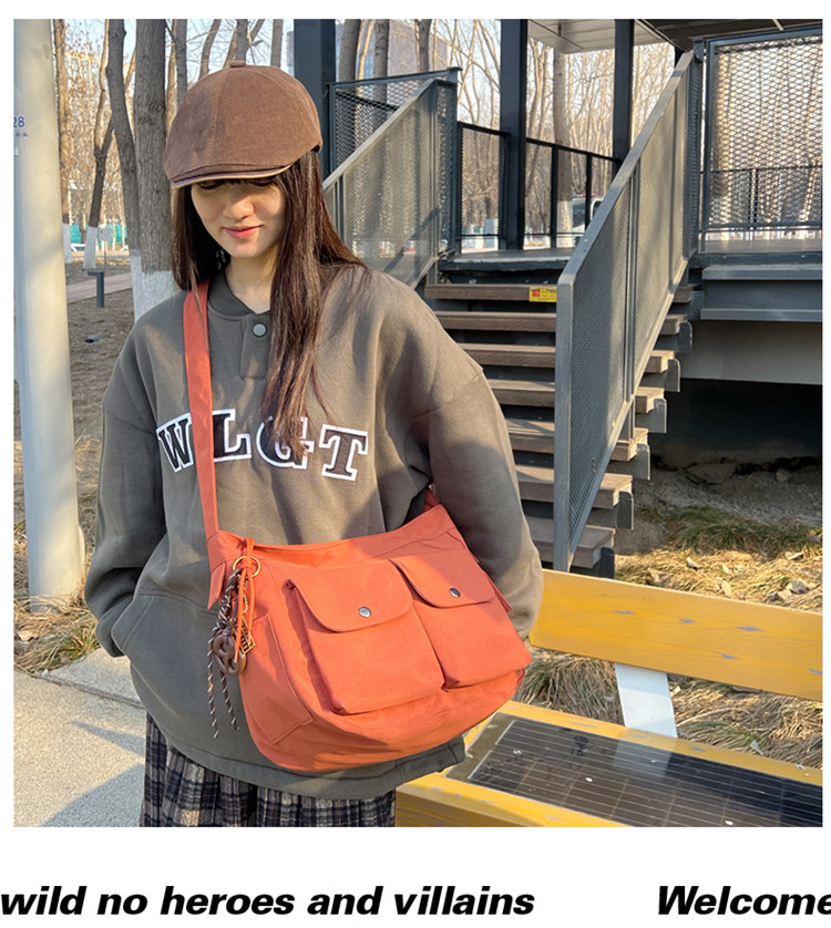 일본식 레트로 캐주얼 크로스 바디 백 여성 중학교 고등학교 학생 클래스 휴대용 캔버스 가방 남성용 대용량 숄더 백