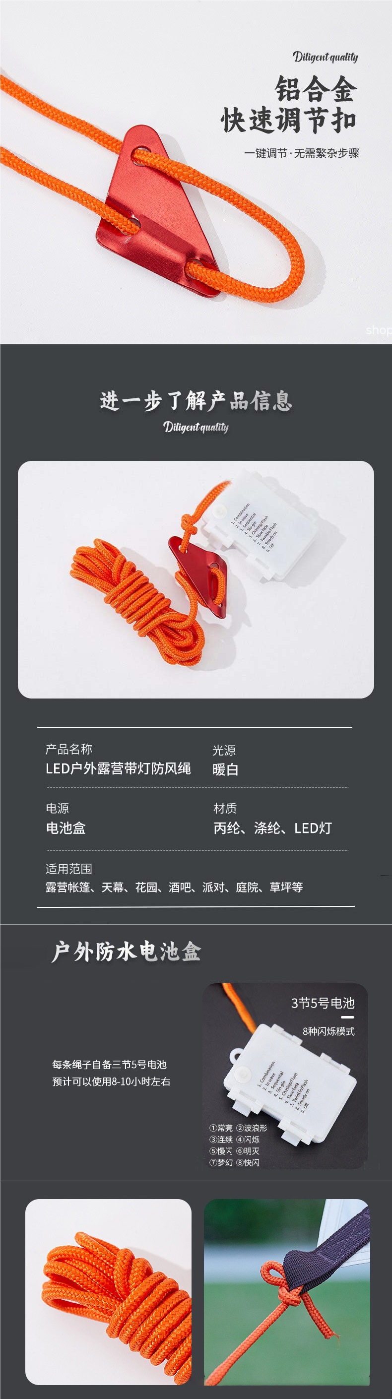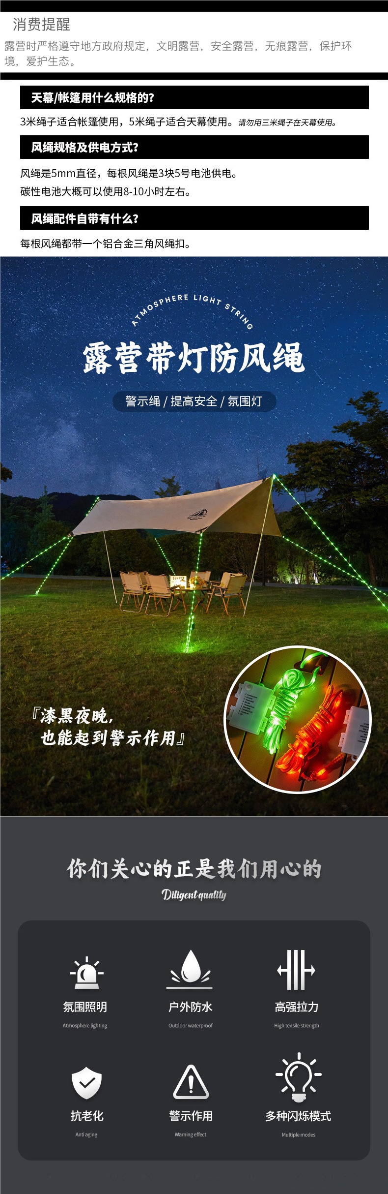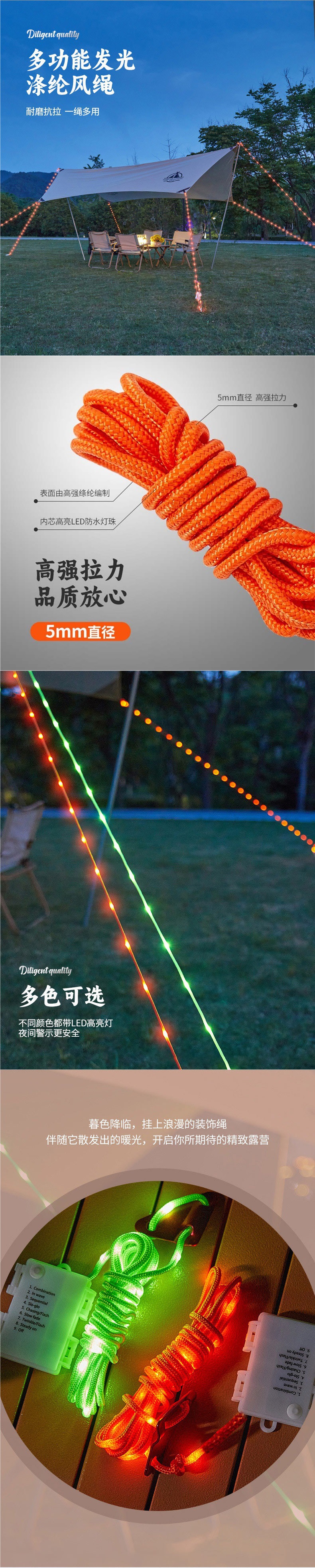야외 빛나는 바람 로프 램프 캐노피 방풍 로프 경고 캠핑 텐트 로프 분위기 램프 안티 트립 로프 내구성