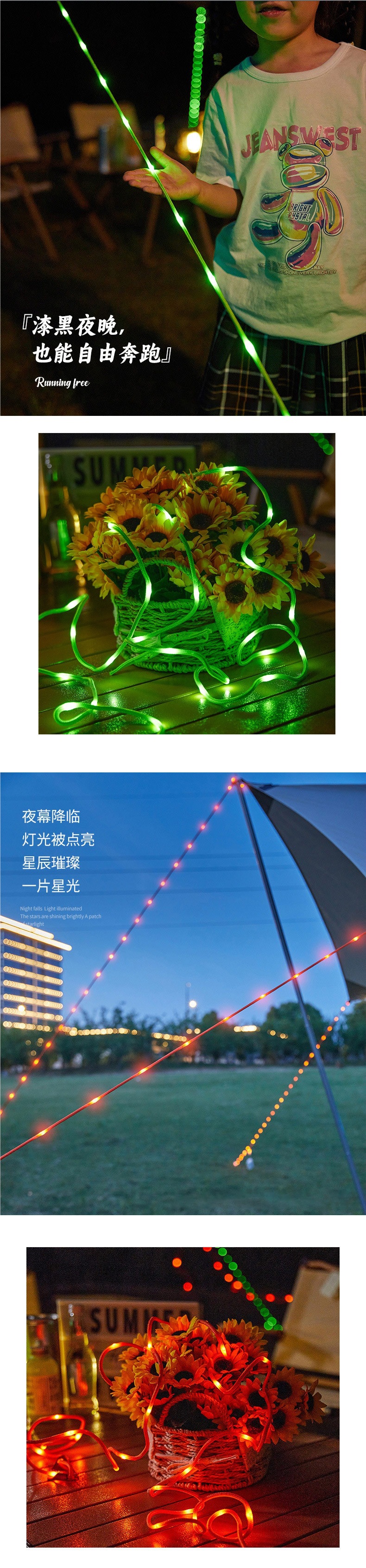 • 빛이 있는 바람 로프-- 5.33m 등--녹색 4개
