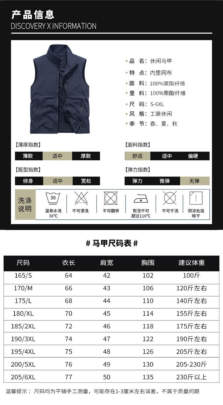 고급 조끼 봄 및 가을 통기성 통통녀 젊은, 중년 및 노인 남성용 멀티 포켓 야외 조끼 재킷