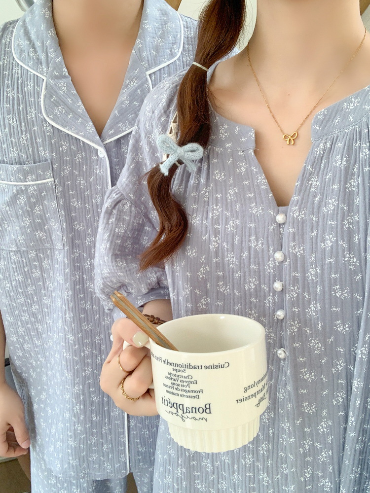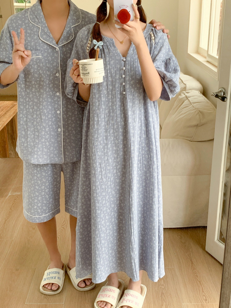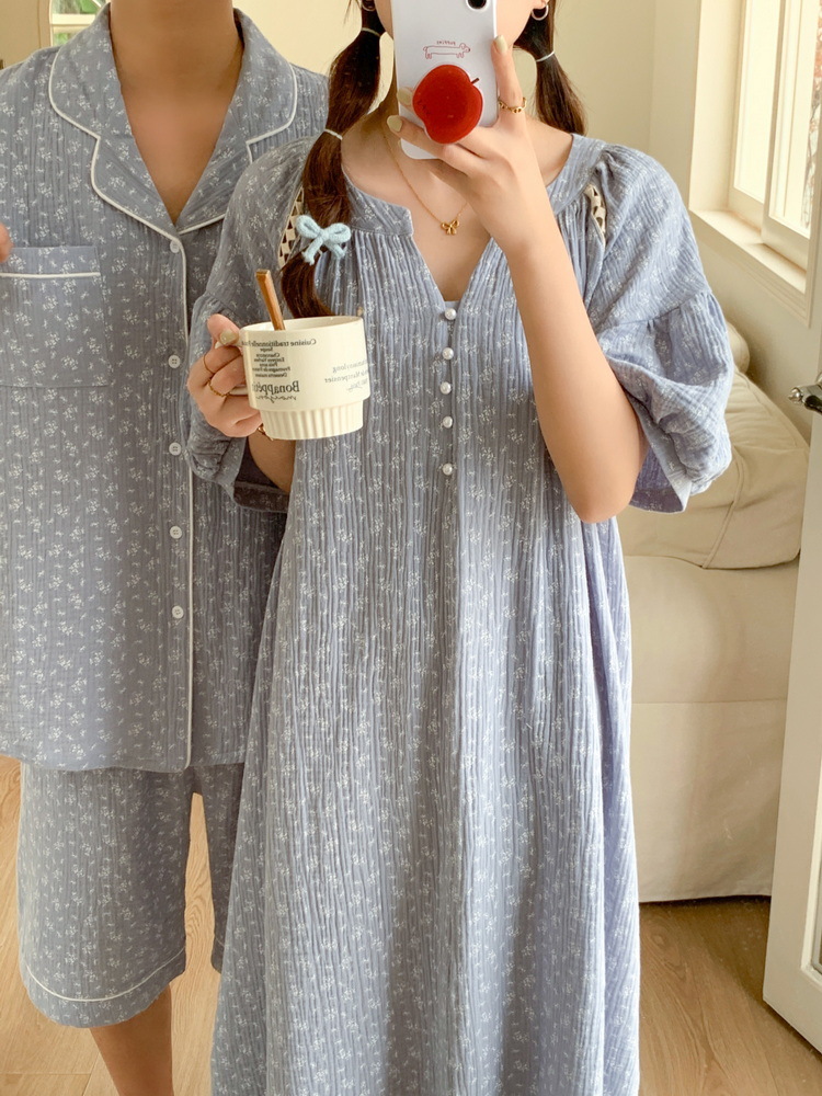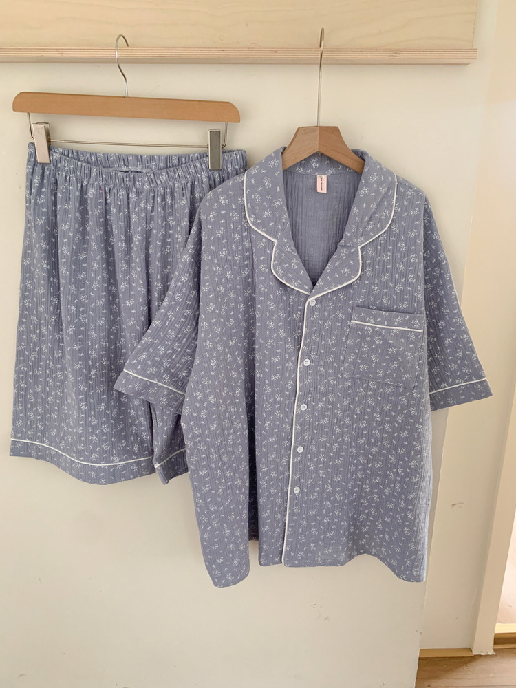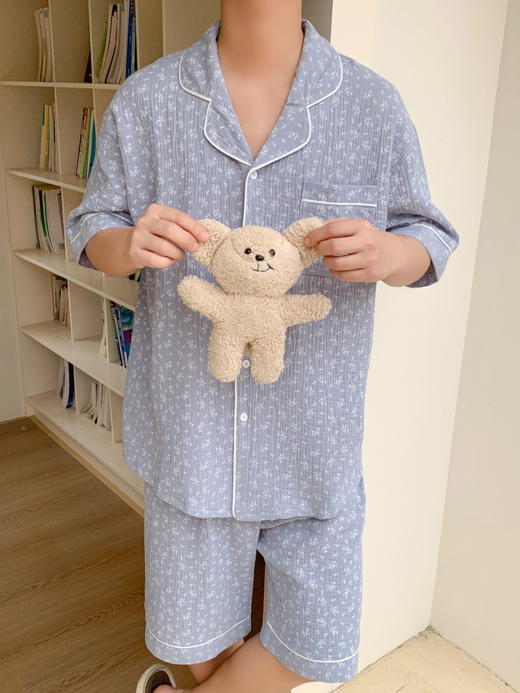 대외 무역 커플을위한 국경 특별 파자마 잠옷 여름 반팔 꽃 할로우 아웃 캐주얼 의상 남성 세트스토어 가기