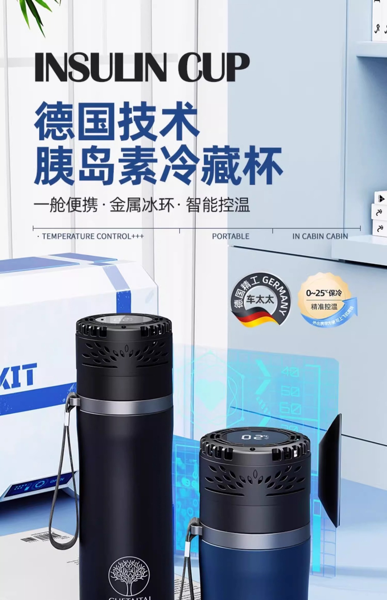 • 블루 사계절 디지털 디스플레이 [2-8℃Cycle】-오래 지속되는 표준 버전 + 특수 휴대용 컵 커버