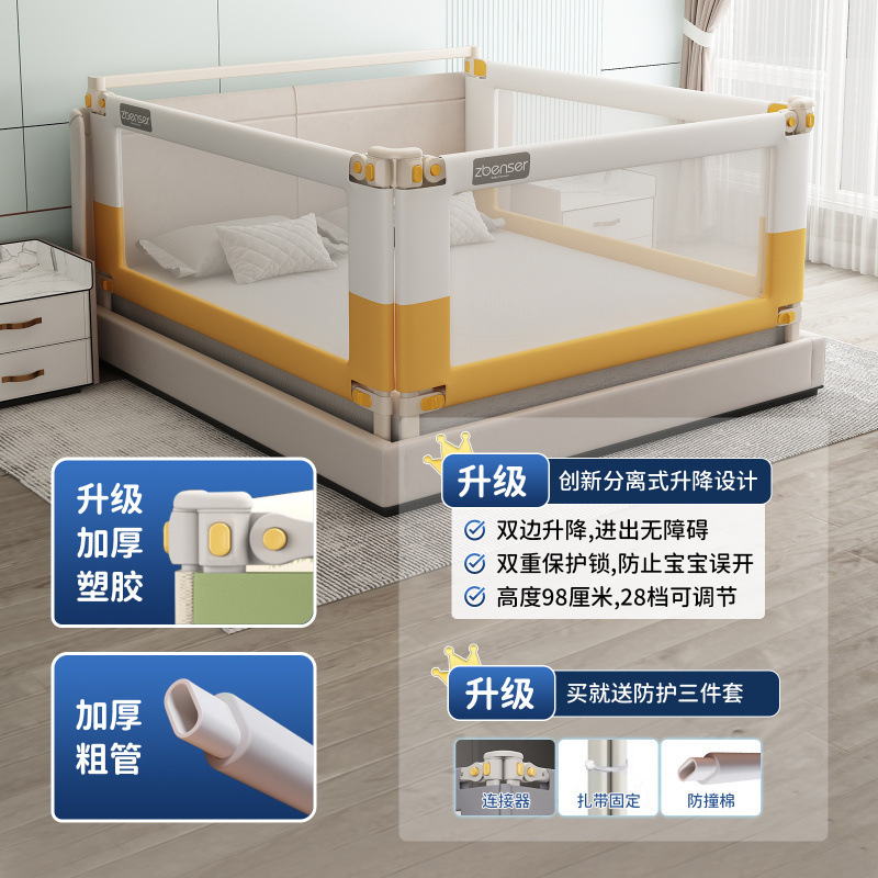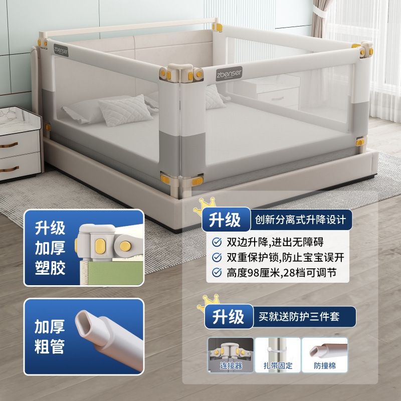 • 3면 패키지 1.8m 침대[1.8m+2.0m+2.0m]+샌드위치 소프트백*2+침대 옆 막대*1+고정 벨트