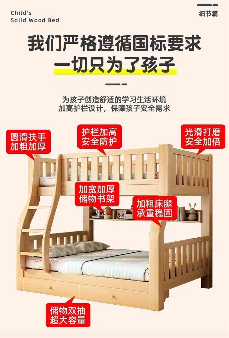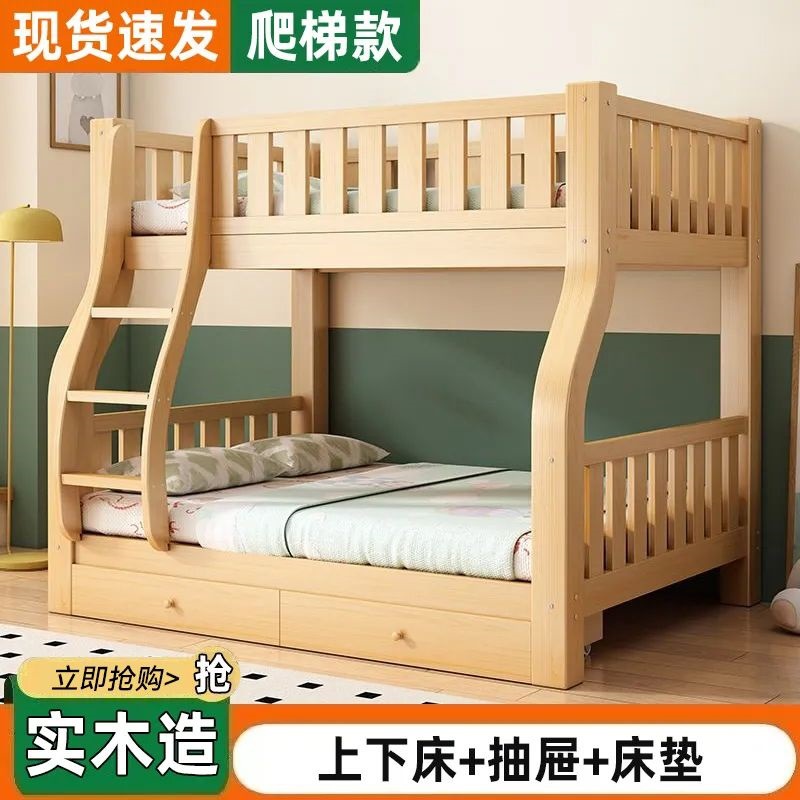 단단한 나무 침대 2 층 성인 간단한 침대 침대 침대 2 층 어린이 높은 낮은 침대 어머니 침대